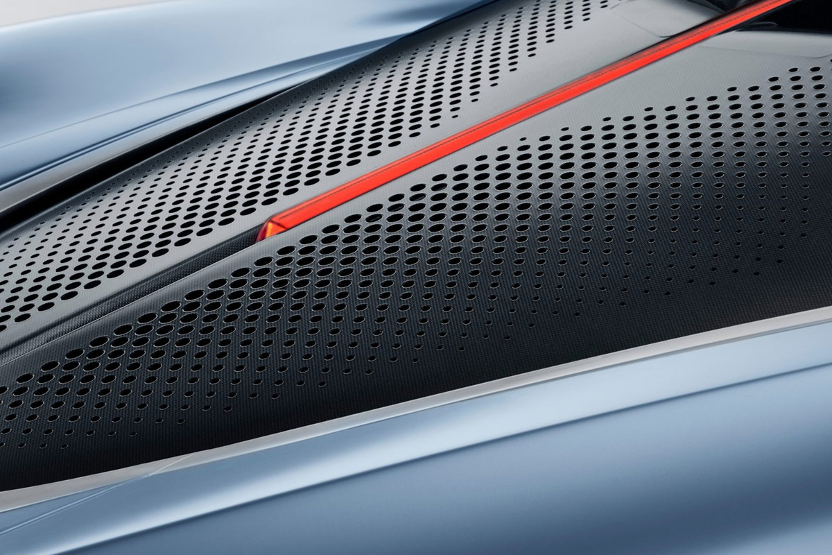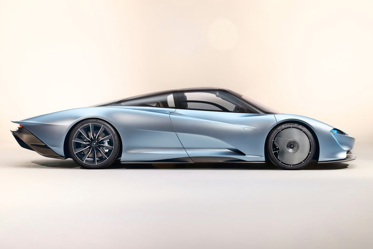 In 12,8 Sekunden rennt der Hyper-GT nicht auf Tempo 200. Nein, nach dieser Zeit stehen bereits wahnwitzige 300 km/h auf dem Tacho. Angaben zur Beschleunigung von 0 auf 100 km/h interessieren in dieser Klasse ohnehin niemanden. Und wer 1,76 Millionen Pfund Sterling, zuzüglich Steuern, für solch ein Kunstwerk ausgibt, der darf durchaus erwarten, dass die Beschleunigungswerte herausragend sind. 5,2 Meter misst die Kohlefaser-Karosserie, die ganz ohne Spoiler auskommt. Um die Höchstgeschwindigkeit zu erreichen fährt sich der Speedtail 35 Millimeter näher an den Asphalt heran, für den nötigen Grip sorgen eigens für McLaren entwickelte Pirelli-Pneus.
