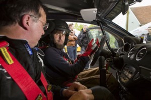 Laut dröhnt der vermeintlich kleine 1,6er unter der Haube in den nahezu nackten Innenraum hinein, traumhaft knallt die Abgasanlage beim Schalten und spätestens nach der dritten Runde sind auch die Intermediates auf Temperatur. Es kommt, wie es kommen muss: Viel zu schnell ist das Ende der schnellen Runden erreicht, der „alte“ Rallye-Hase auf dem Beifahrerplatz gibt das Zeichen zum Abbiegen ins Service-Zelt. Schade. Jetzt sind wir angefixt. Das Shirt ist nassgeschwitzt, die Hände zittern vor freudiger Anspannung und erst langsam gewöhnen sich die Augen wieder an die „stehende“ Umgebung. Tja, da hilft wohl nur eins: Knapp 30.000 Euro auf den Opel-Tisch legen, nocheinmal rund 50.000 Euro pro Rennsaison einplanen und 2014 ebenfalls im ADAC Opel Adam Cup an den Start gehen. Fehlen eigentlich nur noch die Sponsoren ….