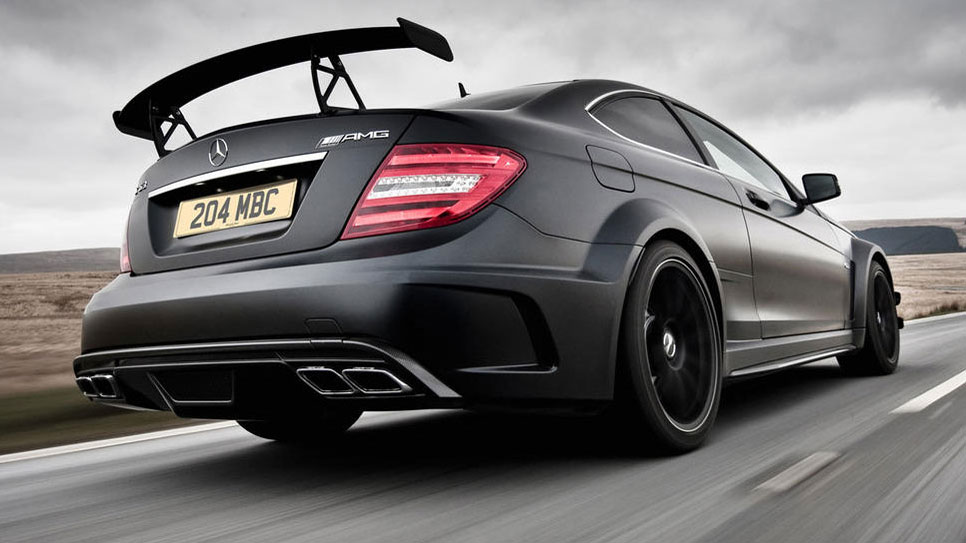 Denn Mercedes Großbritannien bietet seinen Kunden ab sofort und exklusiv eine schwarze „schwarze Serie“ des C63 AMG Coupé Black Series an. Das Sondermodell ist – ähnlich dem Ford Focus RS500 – in mattes Schwarz gehüllt und wird nur als Rechtslenker angeboten. Ob das britische Batmobil mit dem 517 PS starken 6,2-Liter-V8 unter der Haube limitiert wurde, mehr kostet als die „Standardmodelle“ oder mit zusätzlichen Ausstattungsfeatures daher kommt, ist noch nicht bekannt. Wer nun den Tränen nahe ist, dass es dieses Sondermodell nur auf der Insel gibt, dem sei gesagt: Jeder halbwegs talentierte Folierer kann so ziemlich jeden Wagen in solch ein Batmobil verwandeln. Obwohl das natürlich bei einem Kia Rio nur halb so prickelnd daherkommt wie bei einem Supersport-Gerät wie dem 115.000 Euro teuren und in 4,2 Sekunden auf Tempo 100 sprintenden C63 AMG Coupé Black Series.