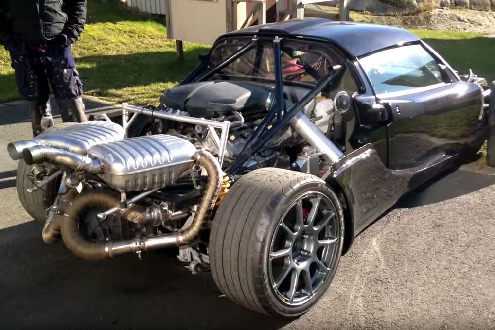 {1}In dieser Zeit wurden der Radstand des kleinen Briten um 27 Zentimeter verlängert und die Spur um elf Zentimeter hinten und neun Zentimeter vorne verbreitert. Nachdem der gewaltige V10 nun Platz gefunden hatte, verbaute Johan noch ein manuelles Sechsganggetriebe aus dem Porsche Boxster S, Bremsen vom Porsche 911 997 GT3 und die Federung vom Porsche 911 996.