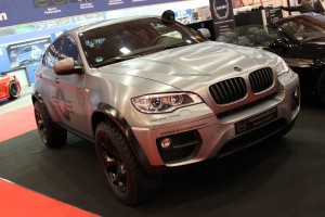 Wer mit japanischem Blech nichts anfangen kann, stattdessen ein BMW-Fan durch und durch ist, der sollte sich auf jeden Fall einmal den Stand von Tuner Manhart Racing anschauen. Denn die Jungs haben gleich vier Modelle mit nach Essen gebracht und vor allem eines davon, ist ein Eye-Catcher wie er im Buche steht. Denn Manhart ist dem Wunsch eines Kunden nachgekommen und hat dessen X6 xDrive 50i zu einer „Dirt Edition“ umgebaut. Bestückt mit gewaltigen Stollenreifen, kernigen Anbauteilen sowie einem höhergelegten Fahrwerk und überzogen mit einer auffälligen Folie mit Nieten-Attrappen und diversen Aufklebern dürfte sich nach diesem „Geländewagen“ wahrscheinlich jeder umdrehen. Zumal die neuen Endschalldämpfer einen angeblich sensationellen Sound absondern sollen. Außerdem am Stand zu bewundern sind ein MH1 S Biturbo auf Basis des BMW 1M Coupé, ein MH3 V8 Cabrio auf Basis des M3 Cabrio und der neue MH5 S Biturbo mit 646 PS, der die nächste Ausbaustufe des BMW M5 darstellt.