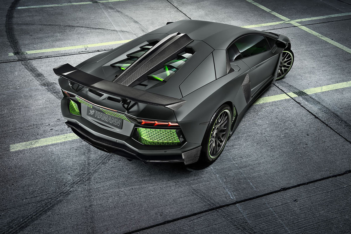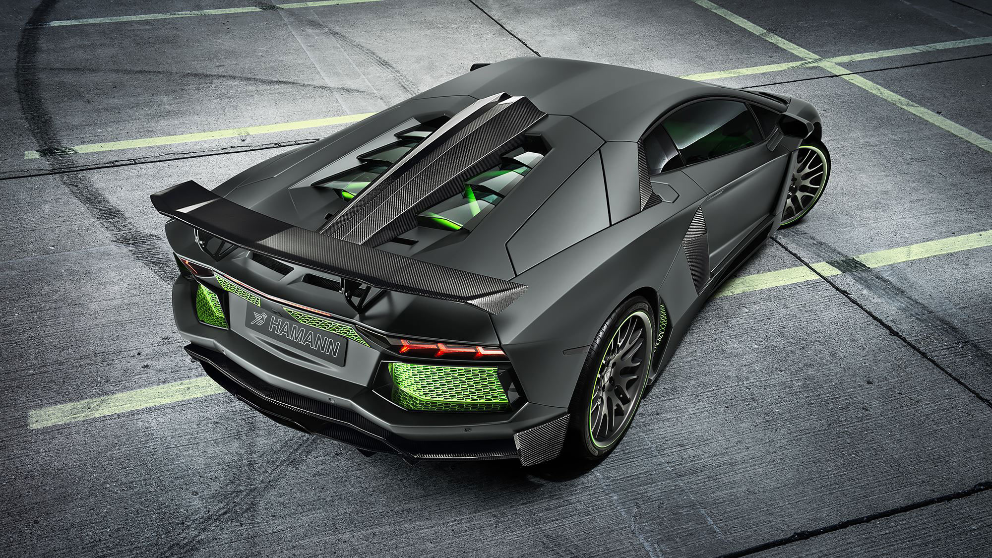 Der normalerweise 700 PS und 690 Nm starke V12 leistet dank geänderter Steuergerätsoftware 760 PS und 735 Nm Drehmoment, soll die Flunder aber wie gehabt in 2,9 Sekunden auf Tempo 100 km/h und maximal bis Tempo 350 km/h beschleunigen. Damit man die Geschwindigkeitsorgie auch im Innenraum stilecht genießen kann, wurden außerdem das Dreispeichenlenkrad mit grünem Leder verziert und die Schaltwippen, die Mittelkonsole und die Türhalterungen in Carbon ausgeführt. Hinzu kommen noch 20 und 21 Zoll große Schmiederräder im typischem Hamann-Design. Gekostet haben soll der Umbau rund 100.000 Euro, die auf die 321.300 Euro Grundpreis des Serien-Aventador aufgeschlagen werden dürfen. Einziger Nachteil des Boliden: Zum Familienausflug zum Strand müssen nach wie vor Range oder Bentley bemüht werden.