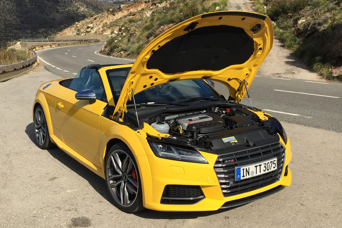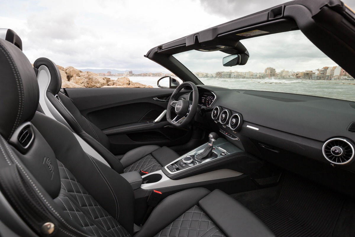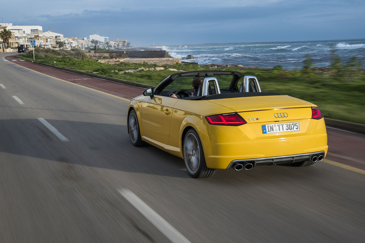 Fahrdynamisch hat sich jedoch deutlich mehr getan, als der Blick auf die technischen Daten vermuten lässt. Hauptgrund dafür: Der neue TT basiert auf der MQB Plattform. Das ist der modulare Querbaukasten, der aus der siebten Generation Golf ein unglaublich gutes Auto macht. Die Genetik des TT Roadsters stimmt also und darum schnappen wir uns gleich einmal die aktuelle Spitzenvariante – den TTS – um sie ein wenig durch die mallorquinischen Berge zu scheuchen.
