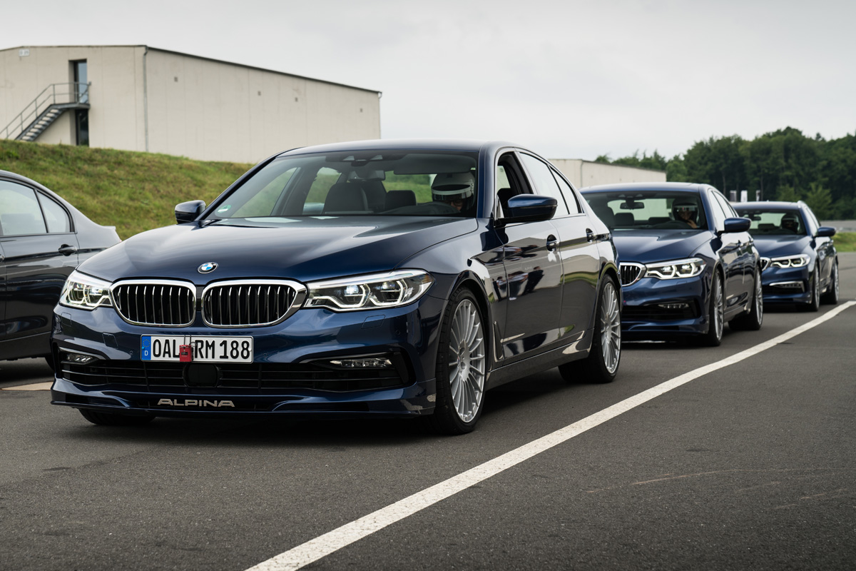 Und so zeigte uns Alpina Fahrdynamik-Chef Andreas Wöllmer bei strömenden Regen eindrucksvoll, wozu der erste B5 mit serienmäßigem Allrad in der Lage ist. Als würde man mit einem Schnellzug einen Gleiswechsel vollziehen, setzen wir zum hakenartigen Ausweichmanöver an – bei Tempo 180! Ohne Ausbrechen, ohne Schlupf und ohne Angst durchfahren wir die Schikane. Der B5 Bi-Turbo Käufer kann sich also sicher sein: sein Auto gehört nicht nur zu den schnellsten, sondern wohl auch zu den fahrstabilsten Fahrzeugen die man derzeit – ab Werk – bestellen kann.