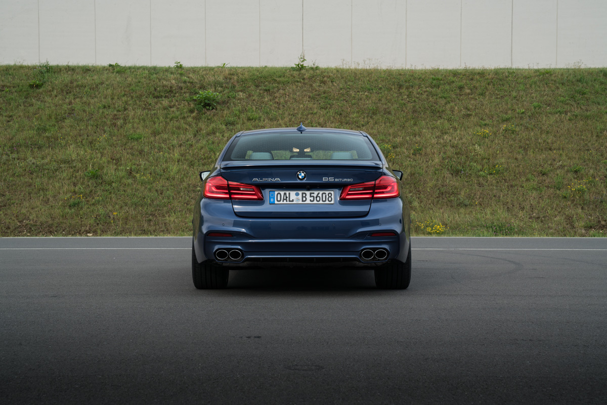 {1} Chapeau Alpina! Mit dem neuen B5 Bi-Turbo ist euch ein wahrhaft großartiges Auto gelungen. Dieser Wagen ist, ohne Übertreibung, nahe an der Perfektion – sollte es so etwas im Automobilbereich überhaupt geben. Es ist schwer zu begreifen was dieser Bi-Turbo 5er für einen bleibenden Eindruck hinterlässt. Der große 4,4 Liter V8 drückt tief in die Magengrube, das sportlich-komfortable Fahrwerk sorgt in Verbindung mit der Integral-Aktivlenkung für ein, in dieser Fahrzeugklasse, bisher nicht gekanntes Maß an Agilität und der superb verarbeitete Innenraum lässt keinen Grund zum Makeln. Zum einen liegt dies an der hervorragenden Basis aus München – schon der normale G30 5er ist eine Wucht – zum anderen aber maßgeblich an der Detailverliebtheit, mit der das Team rund um Firmenchef Andreas Bovensiepen an das Thema B5 Bi-Turbo herangegangen ist. Nein, der B5 Bi-Turbo ist nicht auf der Rennstrecke daheim. Er kann es! Das steht nach dem Test auf dem Bilster Berg außer Frage, jedoch ziehen Auto und Fahrer die lange Strecke vor. Die Autobahn, möglichst frei und unbegrenzt. Dann kann der BMW Alpina B5 Bi-Turbo seine Stärken gänzlich ausspielen. Bleibt zum Schluss nur die Frage: kann ein BMW M5 besser sein, als das Manufakturprodukt aus Buchloe? Das muss die Zukunft zeigen. Doch in einem Belangen haben die Allgäuer in jedem Fall die Nase vorne: anders als den neuen M5 gibt es den B5 auch als Touring! Wenn das nicht Entscheidungshilfe genug ist.