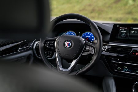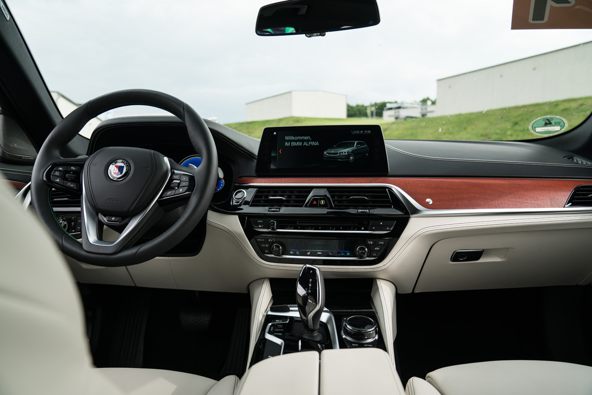 Und was bedeutet das für den Fahrspaß? Sind die Zeiten vorbei in denen wir einen Alpina BMW lässig quer durch die Kurve treiben können? Aber nicht doch. Den Fahrerlebnisschalter auf Sport+ gestellt, offenbart der Alpina Allrad schnell seine grundlegend heckbetonte Auslegung von 40 zu 60 Prozent. Auch ohne Drift-Modus, der derzeit in Mode zu sein scheint, können wir einen Drift sehr gezielt einleiten und dank (optionalem) drehmomentfühlendem Sperrdifferential an der Hinterachse möglichst lange halten. So dynamisch sich der B5 auf der Rennstrecke präsentiert, wir glauben uns fahrdynamisch schnell in einen 3er BMW versetzt, so galant schafft der Wagen den Wechsel zum Luxusgleiter.