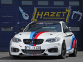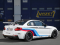 Besonders klar wird das am prominenten Heckflügel, der zum Renn-Outfit passt, aber für etwas zurückhaltender veranlagte Naturen vielleicht doch zu martialisch wirkt. Alternativ kann die Heckklappe jedoch auch gegen eine Leichtbau-Klappe mit eingearbeiteter Abrisskante nach Vorbild des BMW M3 CSL der Baureihe E46 getauscht werden. Der Aufklebersatz in den klassischen M-Farben, die Kotflügelverbreiterungen sowie Diffusor und individuelle Frontschürze runden das Paket nach außen hin wieder stimmig ab. Schwarze Schmiedefelgen in 18 Zoll mit 265er Gummis hinten fügen sich ein und stehen dem 2er sprichwörtlich wie angegossen.