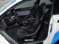 {werbung}So sitzt man auch im M235i RS. Die Sitzkonsolen der Recaro Pole Position wurden zugunsten einer niedrigeren Sitzposition angepasst, die hinteren Sitze flogen für einen weißen Feuerlöscher und den (optionalen) Überrollkäfig gleich ganz raus. Die Bedienelemente des M Performance Interieurs mit knackig kurzem Schalthebel und dem mit Alcantara bezogenen Dreispeichenlenkrad, das auch die Öltemperatur des Sechsenders anzeigt, machen sowohl beim Anschauen als auch beim Anpacken richtig Laune. Die Türtafeln wurden nachträglich mit hellgrauem Leder bezogen.