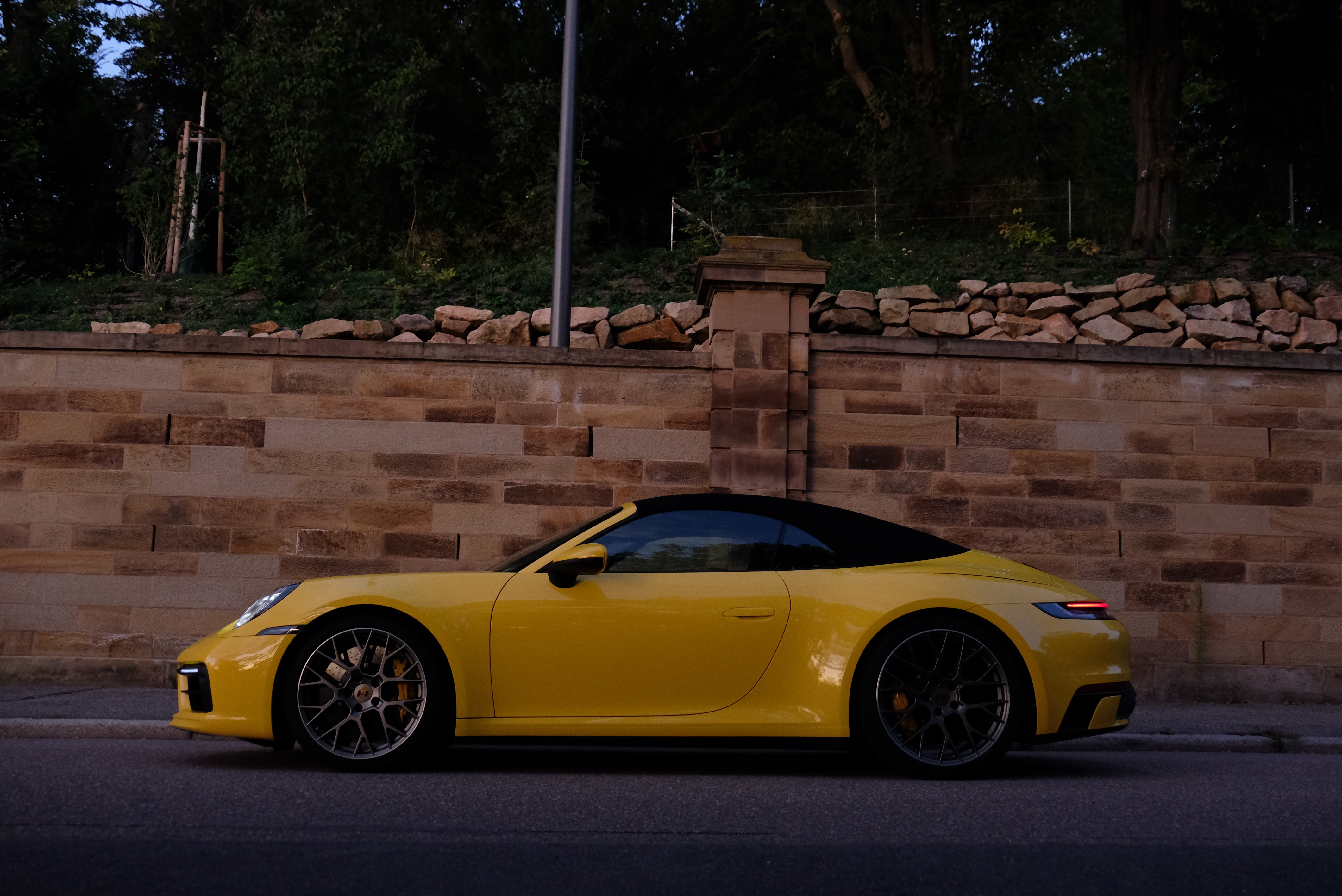 Dann sitzt Du da in diesen ergonomisch so fein geformten Sportsitz, hast gerade links neben dem Lenkrad mit einem leichten Dreh das brodelnde Ungetüm von Triebwerk hinter deinem Rücken zum Schweigen gebracht und während die Hitze tickend das Auto verlässt, legst du kraftlos deine Handgelenke oben auf das Lenkrad, beugst dich erschöpft nach vorne und atmest aus. Du weißt, du hast alles gegeben, du solltest jetzt eigentlich selig sein. Du hast gerade die neueste Stufe Zuffenhausener Ingenieurskunst bewegen dürfen, doch du bist einfach nur enttäuscht. Natürlich nicht von diesem gelb flammenden 992 Carrera S Cabrio, nein, von dir selbst. Denn du weißt, du hast deinen Spielkamerad über die ganze Wegstrecke einfach nur gelangweilt. Warum? Weiterlesen!