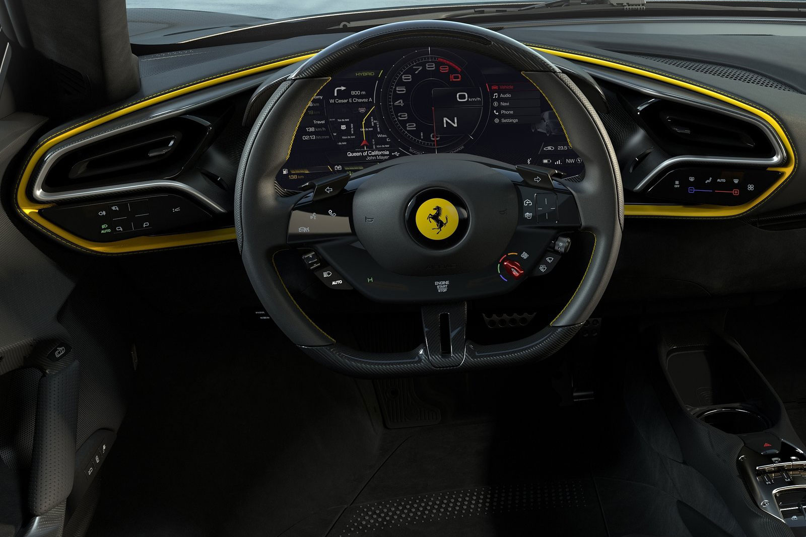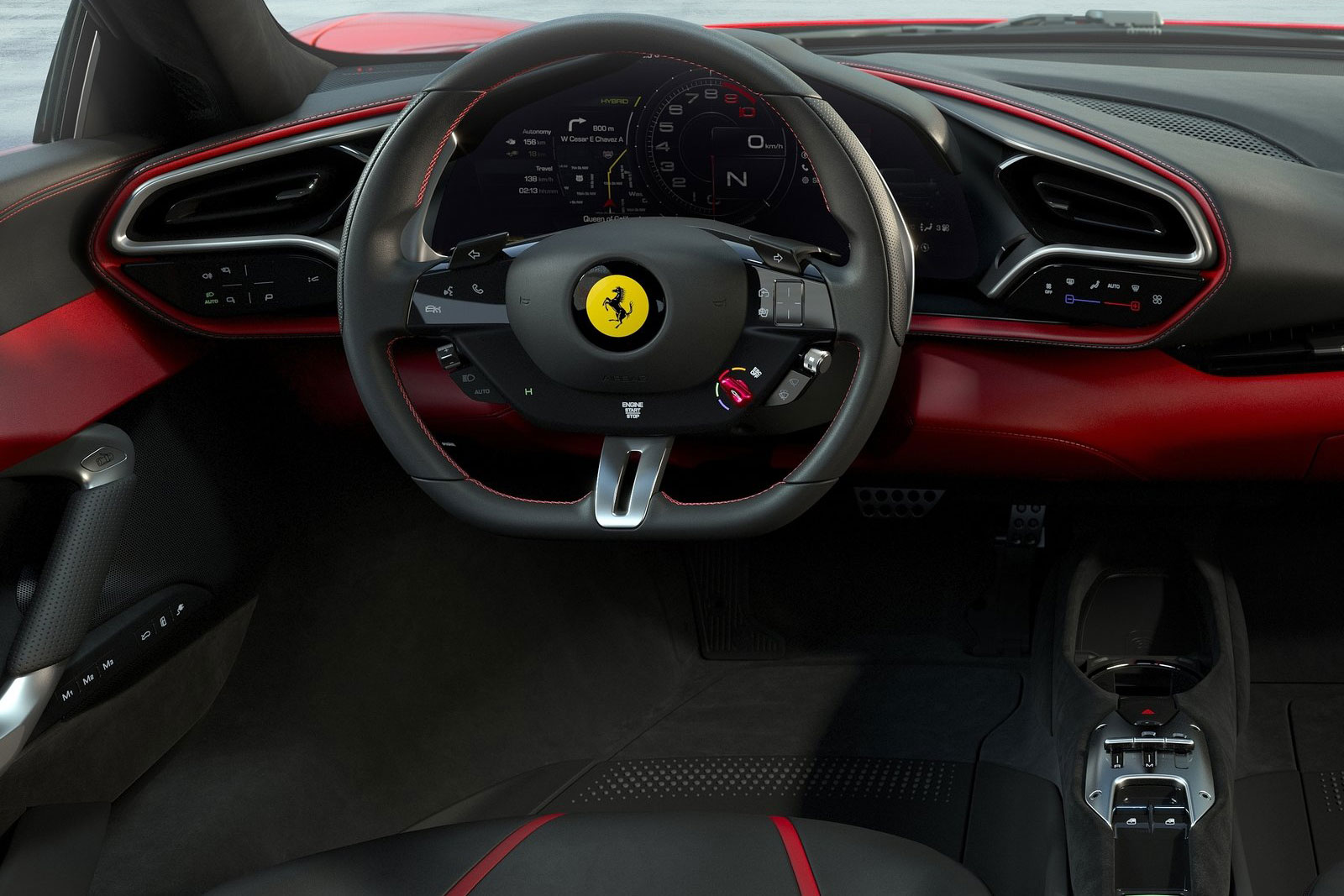 Eigentlich nicht erwähnenswert ist die Möglichkeit, den 296 GTB dank seiner 7,45 kWh fassenden Batterie und des zwischen V6 und Achtgang-Doppelkopplungsgetriebe montierten Elektromotor auch 25 km rein elektrisch zu bewegen. Interessent ist das höchstens für Städte, die Autos mit Verbrenner verbannt haben. Denn ins Zentrum und zurück kommt man mit dem Hybrid-Renner in vielen Fällen wohl auch ganz ohne Abgase.
