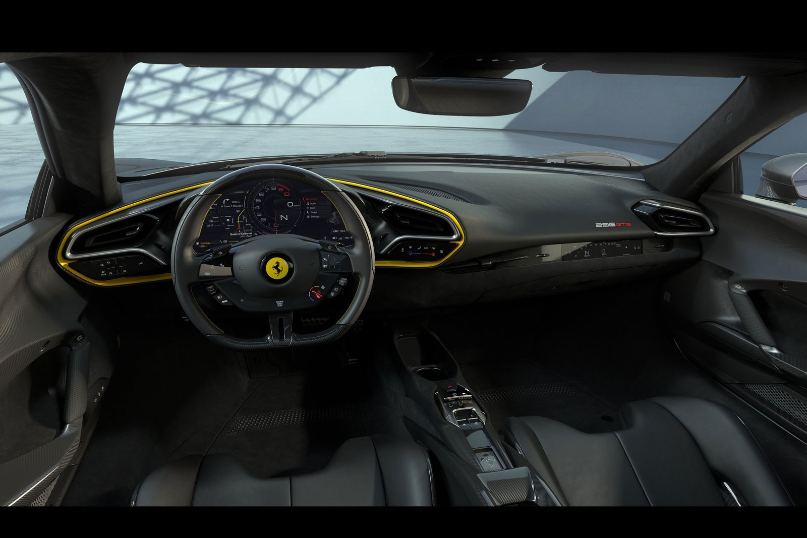 Auch für Außenstehende ist das schrille Motorengeräusch sofort erkennbar. Als erster in der F163-Motorenfamilie verdiente sich dieser V6 während der Entwicklungsphase den Spitznamen „ Piccolo V12“ (kleiner V12). Die 120°-V-Architektur garantiert eine symmetrische Zündfolge, während die gleichlangen, abgestimmten Abgaskrümmer kombiniert mit der einzelnen Abgasleitung außerhalb des Hot-V die Druckwellen verstärken. Diese Eigenschaften verleihen den Oberwellenordnungen eine solche Reinheit, die durch einen Begrenzer mit beeindruckenden 8500 U / min unterstützt wird. Das patentierte „Hot Tube“ wurde für den 296 GTB komplett neu entwickelt und vor den Abgasnachbehandlungssystemen positioniert, um den reinen Sound in die Kabine zu lenken und so die Einbindung und Begeisterung des Fahrers weiter zu steigern.“