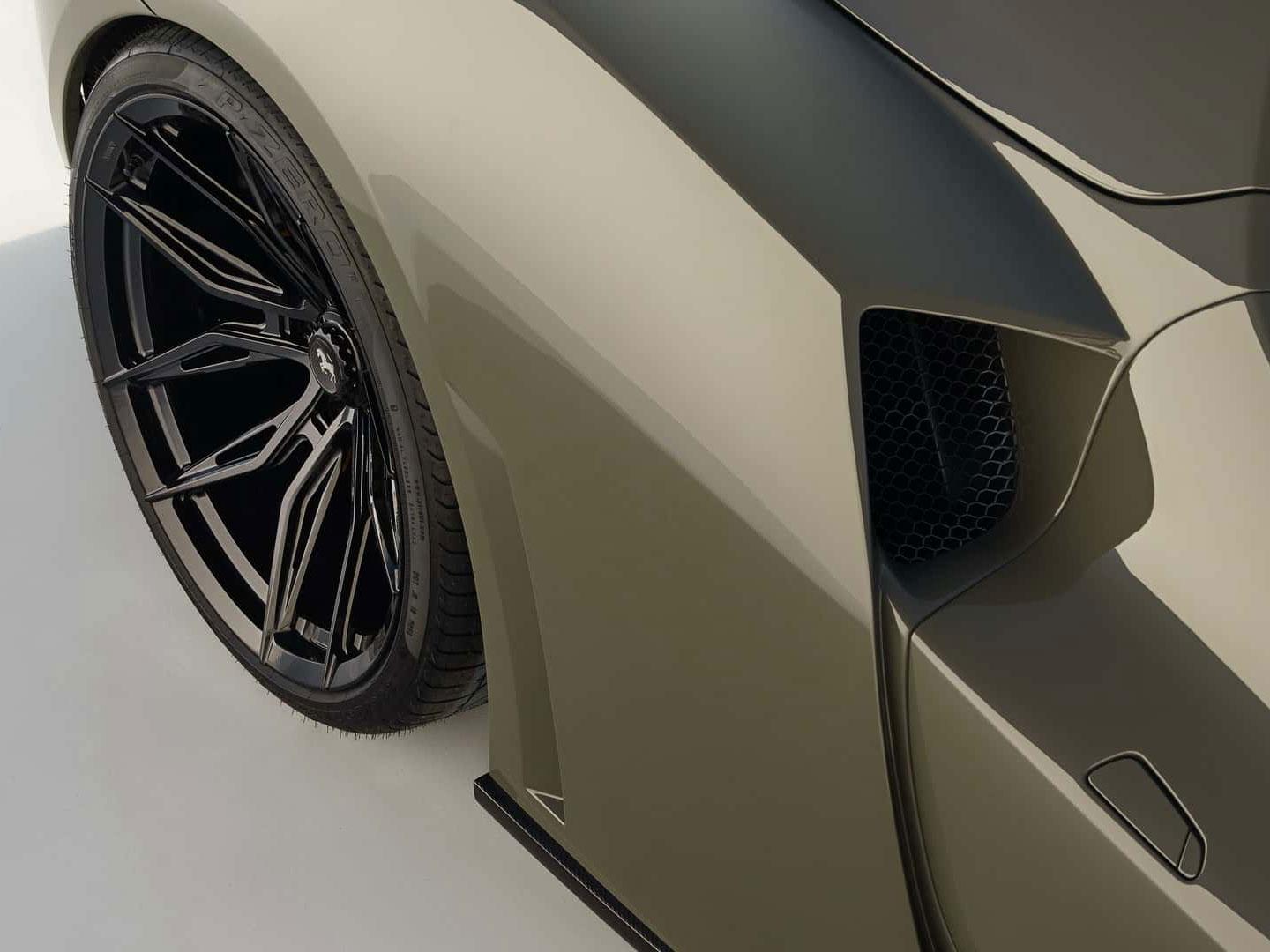 Auch vorne wird nachgelegt: Hier sorgen geschlitzte Kotflügel für drei Zentimeter mehr Breite pro Seite. Dazu gibt es eine neue Frontschürze mit integrierter Lippe, die nicht nur optisch schärfer wirkt, sondern auch aerodynamisch optimiert wurde. Seitenschweller, ein neuer Heckdiffusor und wahlweise eine dezente Spoilerlippe oder ein großer Flügel runden das Bodykit ab.