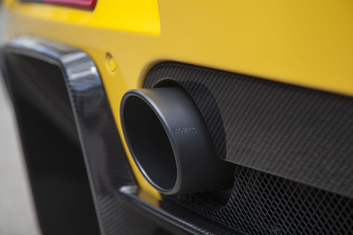 Das Abgassystem besteht aus zwei Fächerkrümmern, Sportkatalysatoren und einem Endschalldämpfer und wird aus besonders leichtem Inconel gefertigt. Das spart sieben Kilo Gewicht. Auf Wunsch gibt es eine Variante mit elektronischem Soundmanagement. In diesem Fall kann der Motorsound über das Manettino am Lenkrad zwischen dezent und „racing-like kraftvoll“ verstellt werden. In die Welt geschickt wird der Sound über zwei 100 Millimeter messende, mattschwarz beschichtete Endrohre. Zu Preisen für die Modifikationen äußert sich der Tuner nur auf Anfrage.