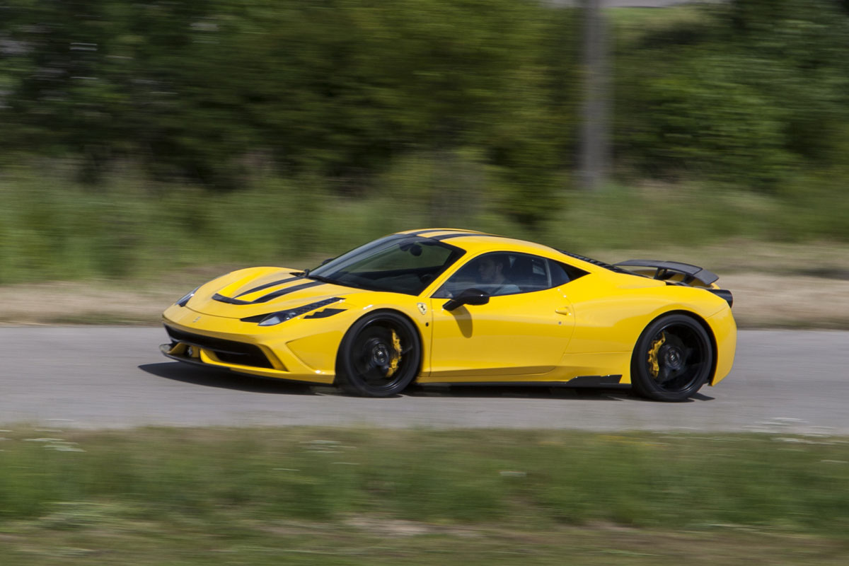 Gebaut für den Einsatz auf der Rennstrecke, geht’s im knapp 1.300 Kilogramm leichten und 605 PS starken Ferrari 458 Speciale in 3,0 Sekunden auf Tempo 100, nach 9,1 Sekunden liegen 200 km/h und auf der Ferrari-eigenen Rennstrecke in Fiorano soll der Speciale sogar mit dem 740 PS starken F12 berlinetta fast gleichauf liegen. Pillepalle, meint Tuner Novitec Rosso und schärft den Ferrari 458 Speciale nochmals nach – auf bis zu 636 PS. Damit sollen mehr als 330 km/h Topspeed möglich sein.