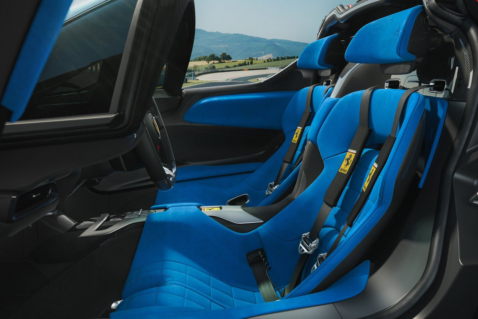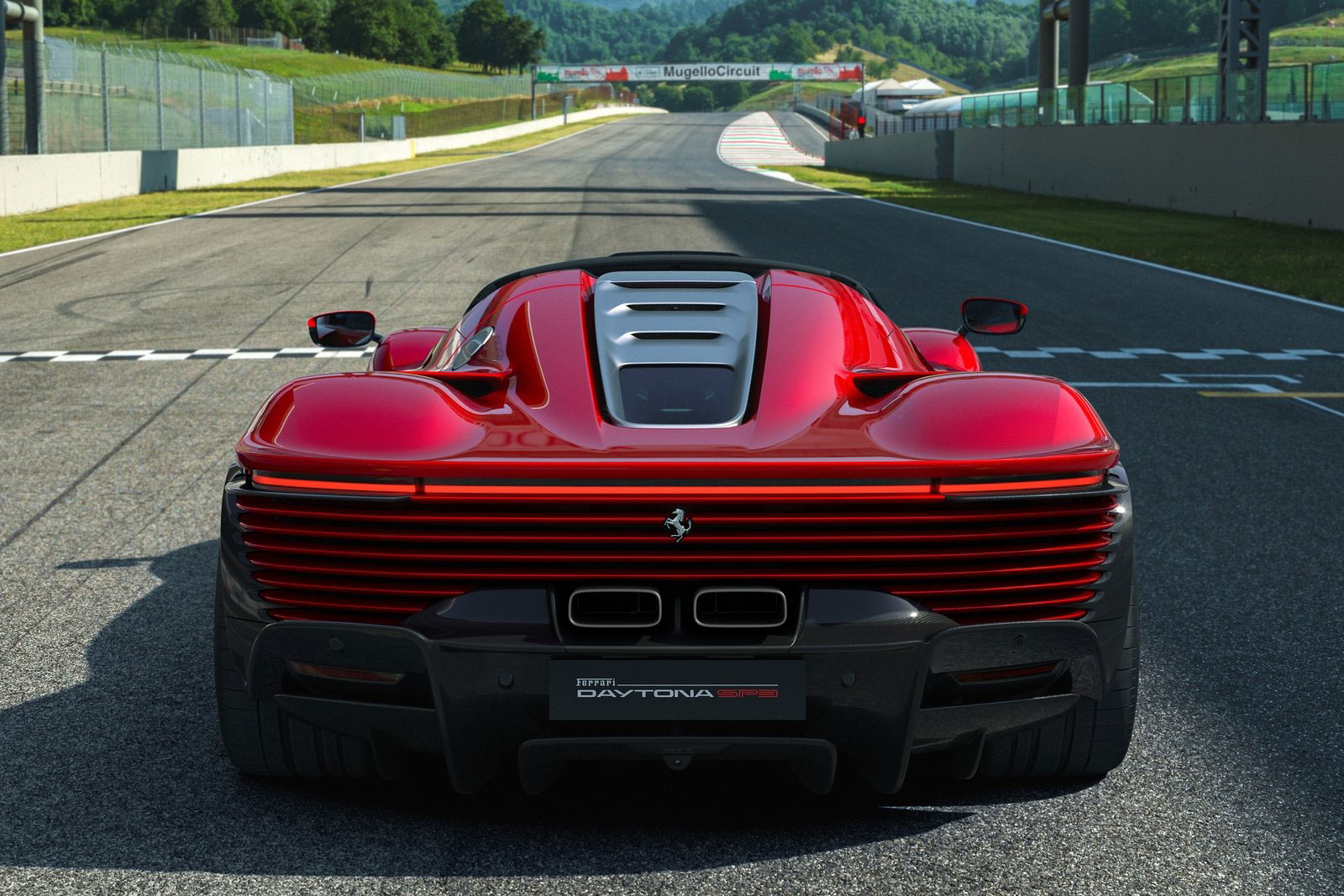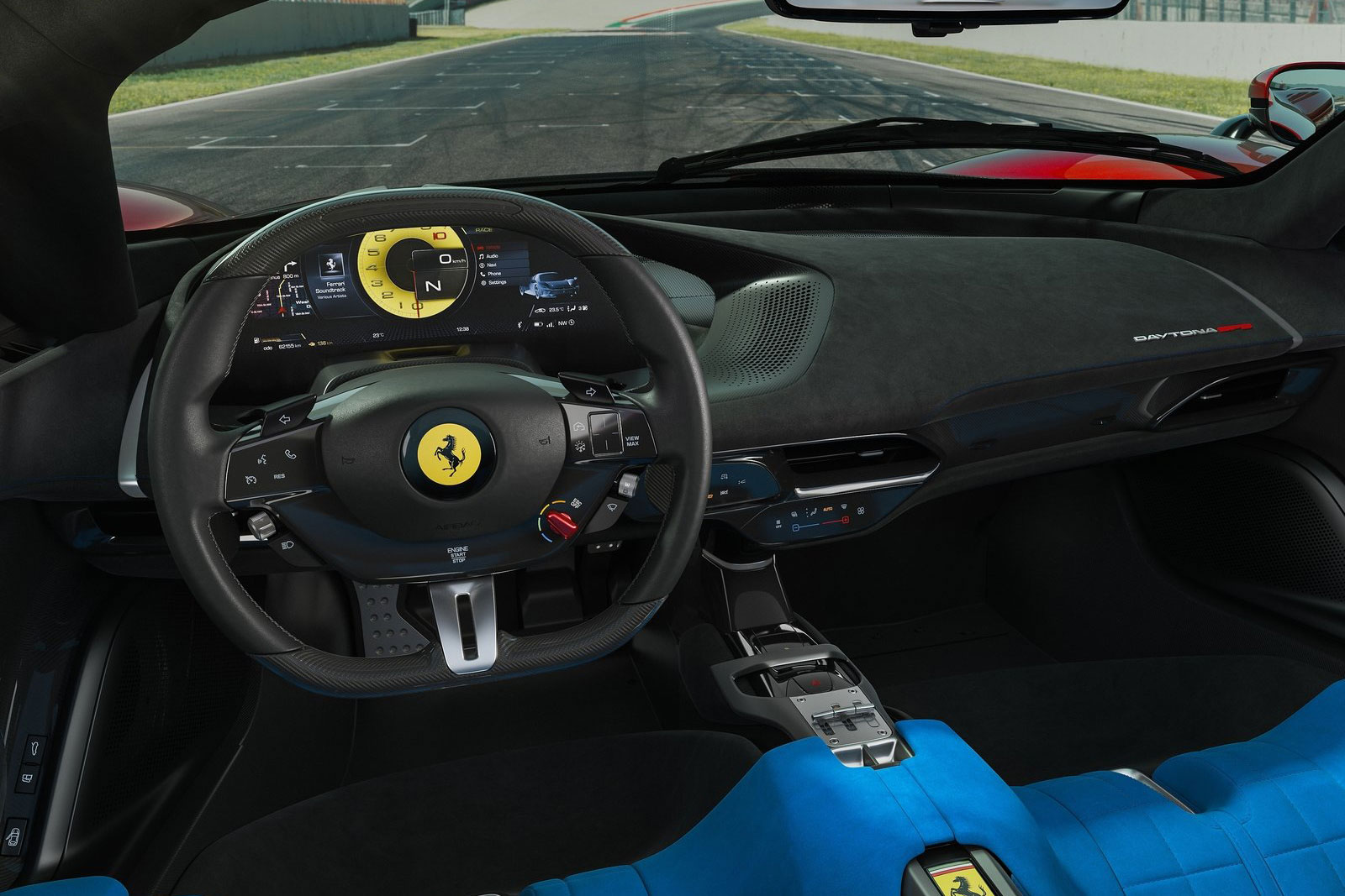 [adrotate group=“1″]Angetrieben wird der auf wenige Einheiten limitierte Ferrari Dayton SP3 von einem 6,5 Liter großen, frei saugenden und bis 9.500 U/Min. schreienden V12-Motor mit 840 PS und 697 Nm. Das Aggregat entstammt im wesentlichen dem Ferrari 812 Competizione wurde beim Daytona allerdings Heck-Mittelmotor hinterm Rücken des Fahrers verbaut.