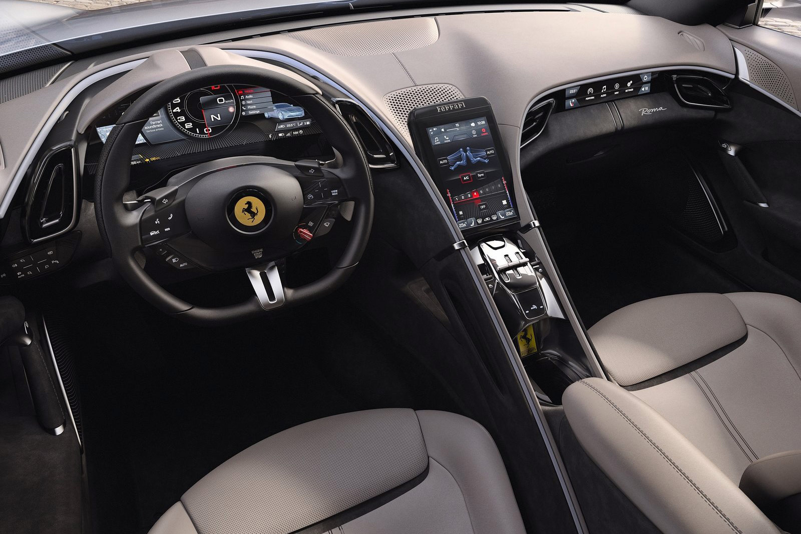 Doch auch der Roma ist jetzt nicht die automobile Skulptur, über die man spontan sagen würde „Roma è bellissima“. Ohne Pininfarina wirkt das bei den Italienern alles zunehmend einfallslos. Aber vielleicht liegt es auch an den Genen. Schließlich basiert das Coupé auf dem 2008 vorgestellten California, einem Klappdach Cabrio mit ausladendem Gesäß, aus dem 2018 ein etwas anmutigerer Portofino (noch so ein Städtename) wurde. Antriebsseitig ist das Erbgut jedoch vom Feinsten: Verbaut ist ein 3,9-Liter-V8-Motor mit 620 cavalli al galoppo, die über das neue 8-Gang-Doppelkupplungsgetriebe den Roma in 3,4 Sekunden auf 100 km/h sprinten lassen. Danach geht es zügig weiter bis 320 km/h Topspeed. Selten kamen Golfbags im 272 Liter großen Kofferraum schneller zum Clubhaus. Und wem das nicht reicht: Durch die umklappbare Rückbank lässt sich das Ladevolumen nochmals um 73 Liter erweitern. Echt praktisch, dieser Ferrari.