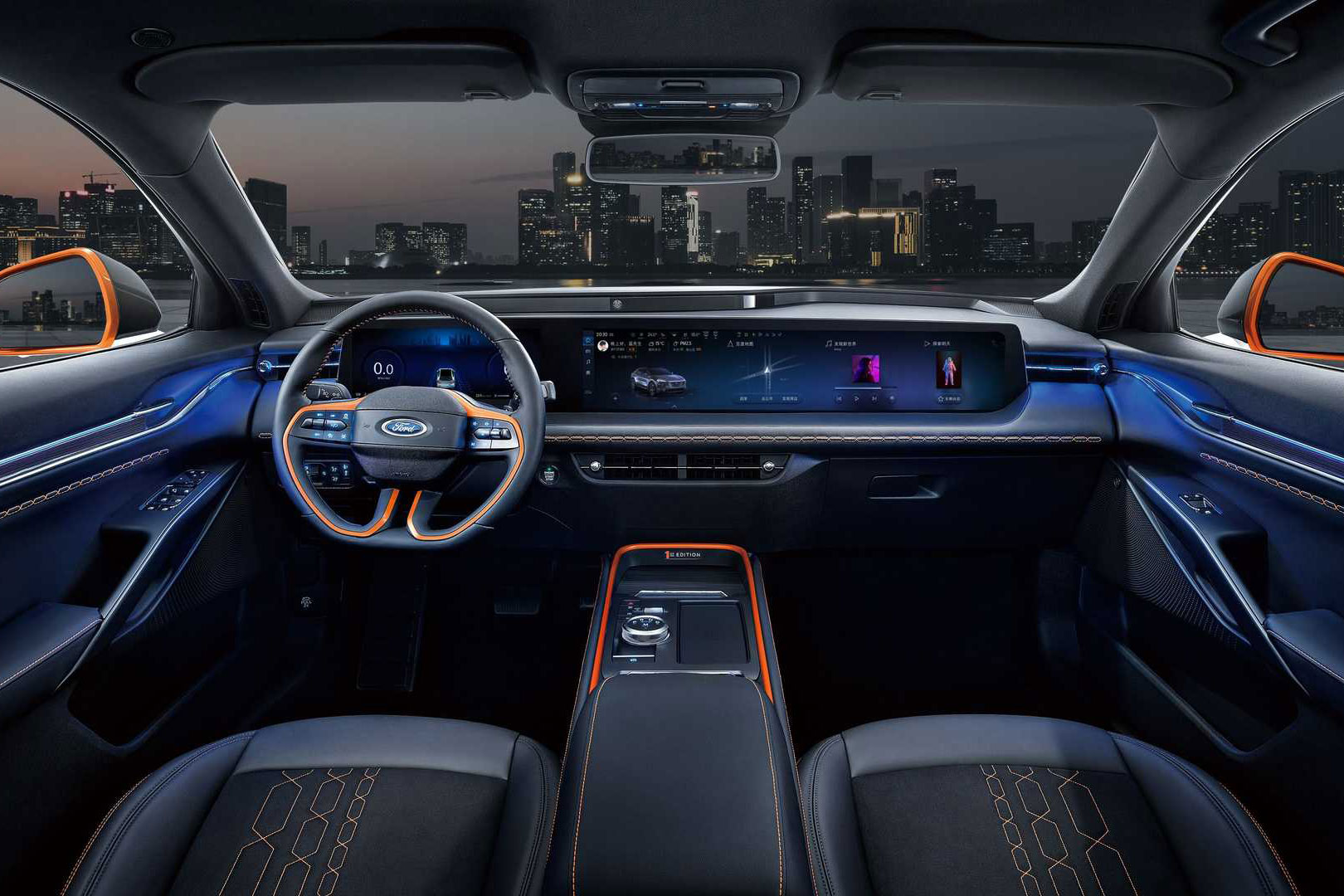 {1}So wird es der gigantische 1,1 Meter breite Touchscreen in alle Ford Evos-Varianten schaffen. Er ersetzt das alte Ford Sync-System und verfügt über eine eigene „Künstliche Intelligenz“, wie eine Kopplung an den Baidu Virtual-Personal-Assistant. Kabellose Updates über das Internet verstehen sich auch im Evos von selbst.