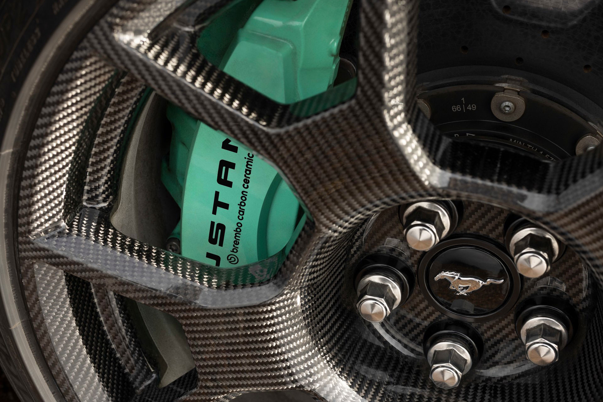 Serienmäßig ist der Dark Horse SC mit MagneRide-Dämpfern ausgestattet. Das Fahrwerk wurde im Vergleich zum Dark Horse umfassend modifiziert: Es kommen straffere Federn, neue Stabilisatoren sowie aktualisierte Achsschenkel und Querlenker zum Einsatz. Eine leichte Magnesium-Domstrebe sorgt für zusätzliche Steifigkeit. Die Verzögerung übernehmen Brembo-Anlagen mit sechs Kolben vorn und vier Kolben hinten, während 20-Zoll-Aluräder mit Pirelli-P-Zero-R-Reifen den Kontakt zur Straße halten.