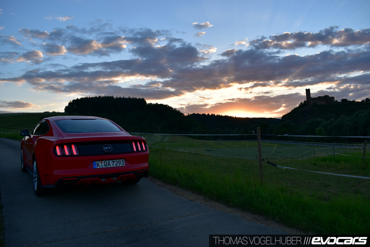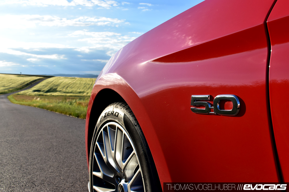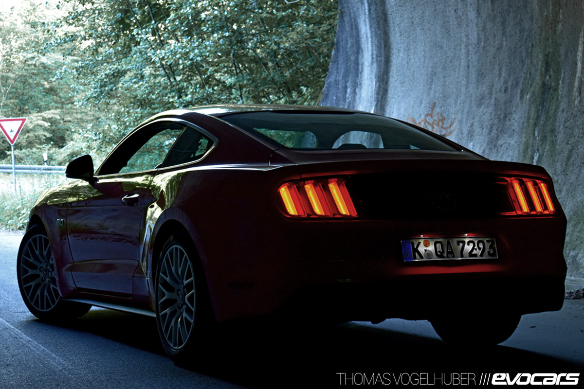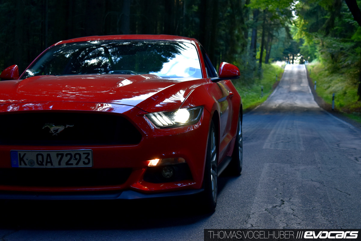 {1}Da wäre einmal der Auftritt ansich: auch wenn Rennrot nicht unbedingt die beste Farbe für einen Mustang ist – zumal die Farbbezeichnung irgendwie nicht passt – pflegt der V8-Ford einen zurückhaltenden, positiven, ja beinahe stilvollen Auftritt. Er ist nicht der „Digga“, der nach der Pumpeinheit im Fitnessstudio seine frisch antrainierten Muskeln spielen lassen muss – er ist mehr der amerikanische Farmer, der seinen Kontrahenten notfalls auch mit der flachen Hand einen halben Meter in den Boden rammt. Aber darum eben kein Aufhebens macht. Der V8 brabbelt stets wohlig im Hintergrund, beruhigt die Umstehenden, beruhigt die Seele. Der Mustang GT ist ein einfaches Auto, das von jedem gefahren werden kann, das aus jeder Perspektive verdammt gut aussieht und dennoch nie ins Unseriöse abgleitet. Ob mit Jeans oder im Zweireiher: Mustang geht immer.