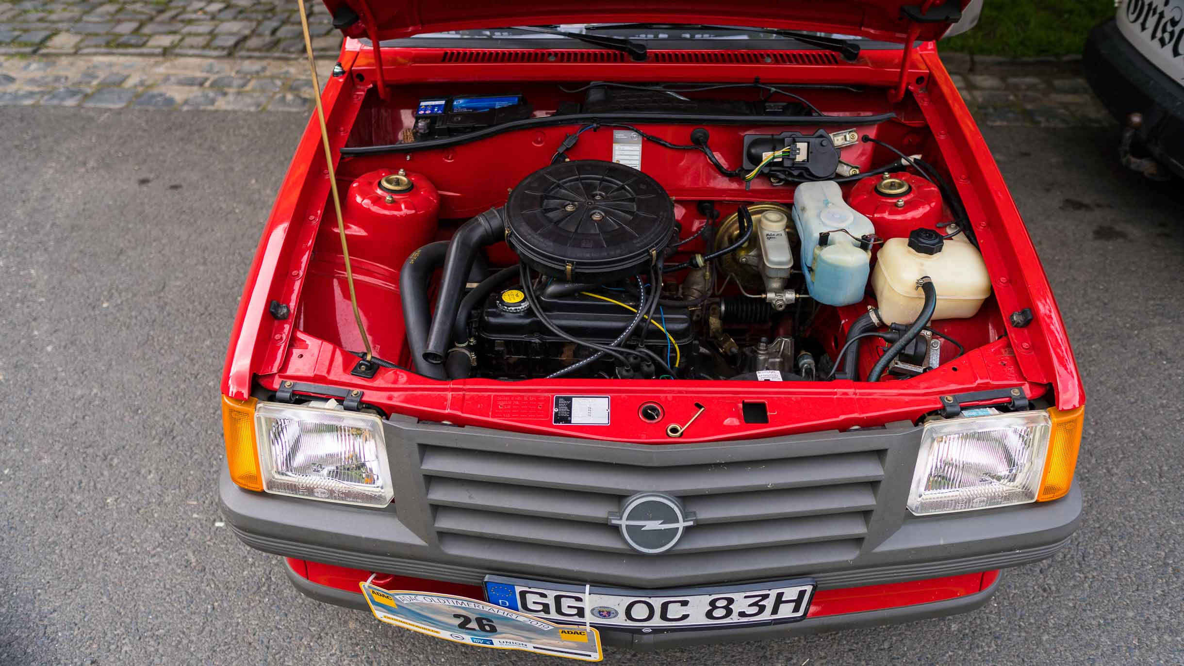 Der Lack, so sattrot wie ein Opel nur sattrot vom Band rollt. Der Sitzbezugstoff frei von Wellen, Abdrücken oder sonstigen Verfärbungen. Dazu die Zeiger der Instrumente: so verkehrsorange strahlt nicht mal der Fächer im RAL-Katalog. Auf der Unterseite der Hutablage klebt sogar noch der Produktionsaufkleber des Werks in Saragossa.