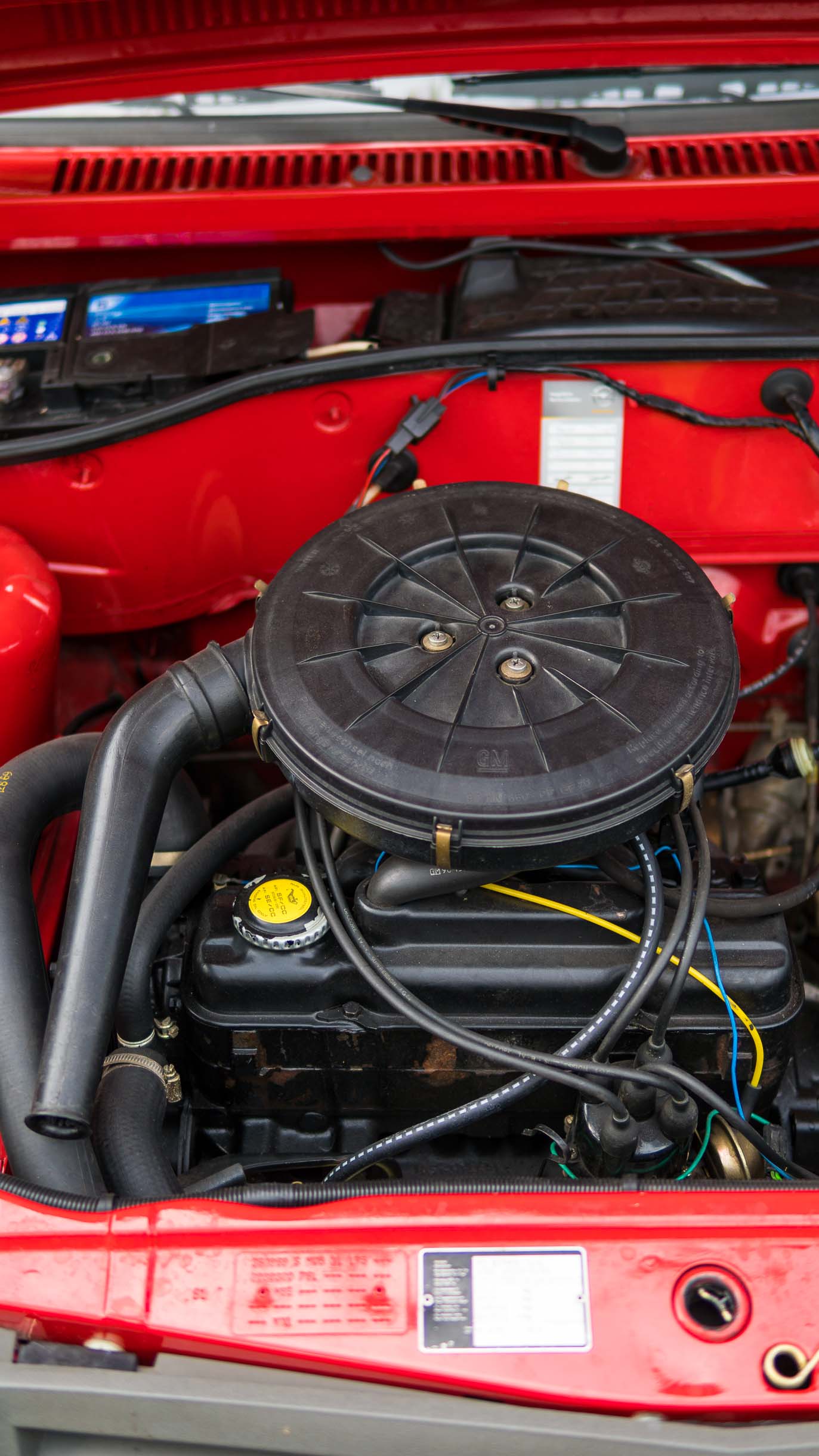 Der Lack, so sattrot wie ein Opel nur sattrot vom Band rollt. Der Sitzbezugstoff frei von Wellen, Abdrücken oder sonstigen Verfärbungen. Dazu die Zeiger der Instrumente: so verkehrsorange strahlt nicht mal der Fächer im RAL-Katalog. Auf der Unterseite der Hutablage klebt sogar noch der Produktionsaufkleber des Werks in Saragossa.