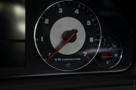 Unter der Haube arbeitet ein standesgemäßer 5,5-Liter großer M113 V8-Kompressor mit 507 PS und einem maximalen Drehmoment von 700 Nm. Der Standardsprint von 0-100 km/h gelingt in ca. 5,5 Sekunden. Der Vortrieb endet bei 210 km/h. Ohne die Zusatzkosten für einen Cabrio-Umbau lag der einstige Neupreis bei etwas über 130.000 Euro.