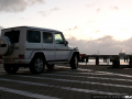 Und es geht viel. Verdammt viel. Mühelos kraxelt er auf jede steil scheinende Anhöhe, zermürbt vormals stabil aussehende Baumstämme einfach mit seinem kolossalen Gewicht von 2,6 Tonnen, hängt sich bis knapp 40 Grad im Winkel in die Seile, nur um sich danach durch die nächste Matschgrube zu wühlen. Und wenn Du vor Angst, gleich nicht mehr weiter zu kommen, lieber mal ne Sperre zuschaltest, tippt sich der G an seine virtuelle Stirn und scheint Dir „ist das wirklich alles?“ zuzurufen. Im Gelände wirft er sein weißes Kleid ab, Du vergisst die sauteure Designo-Ausstattung, vergisst den Grundpreis von rund 90.000 Euro, wirst eins mit dem Auto. Am Ende scheitert es allenfalls an Deinem Mut, noch weiter zu fahren. Es scheitert definitiv nicht am G. Der macht nämlich nicht den Eindruck, als würde ihn irgendetwas auf dieser Welt beeindrucken. Selbst auf härtestem Untergrund klappert nichts, in jedem Bauteil steckt eine unvergleichliche Sorgfalt und Stabilität, dass so manchem wirklich die Spucke wegbleiben.