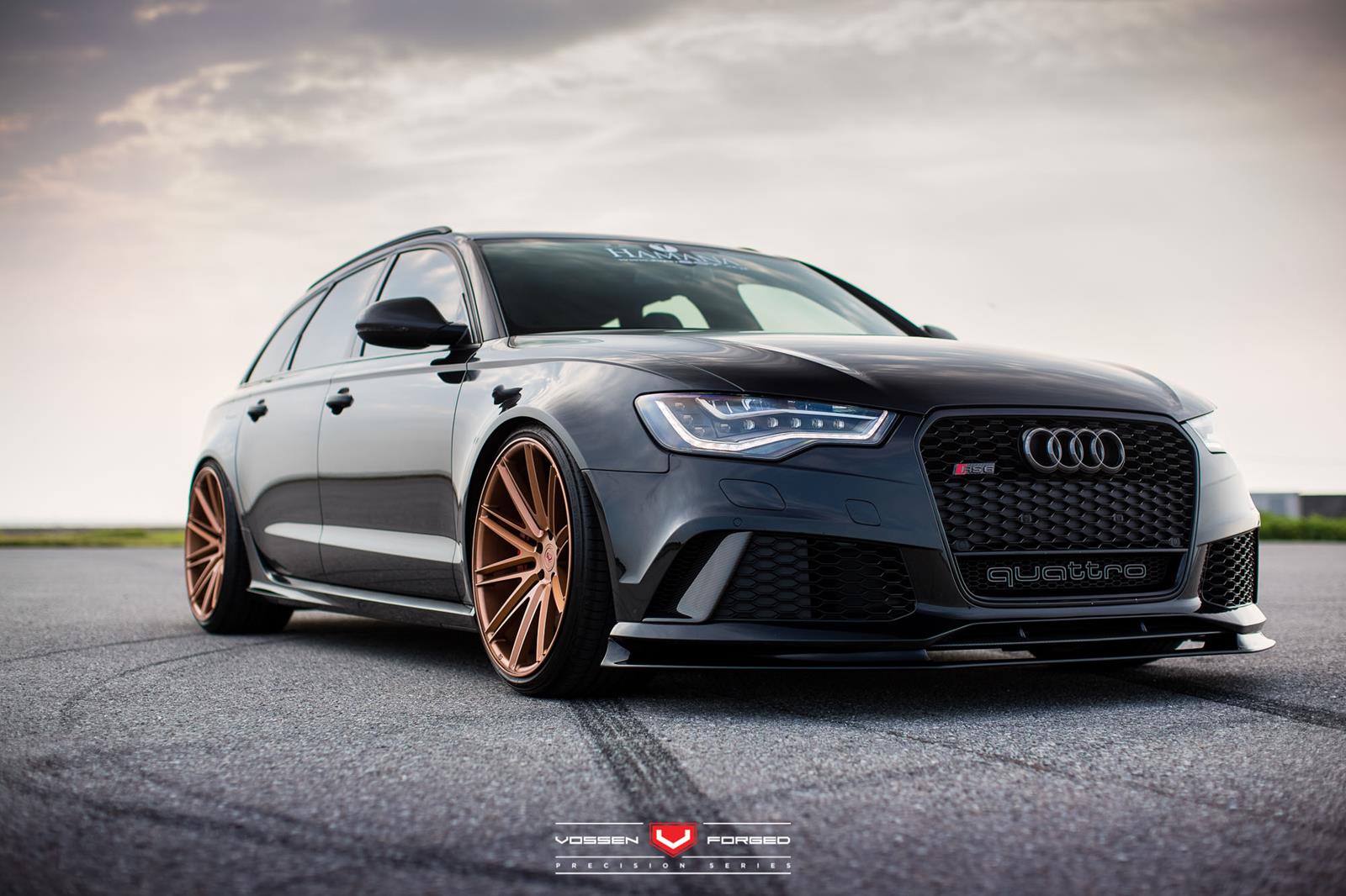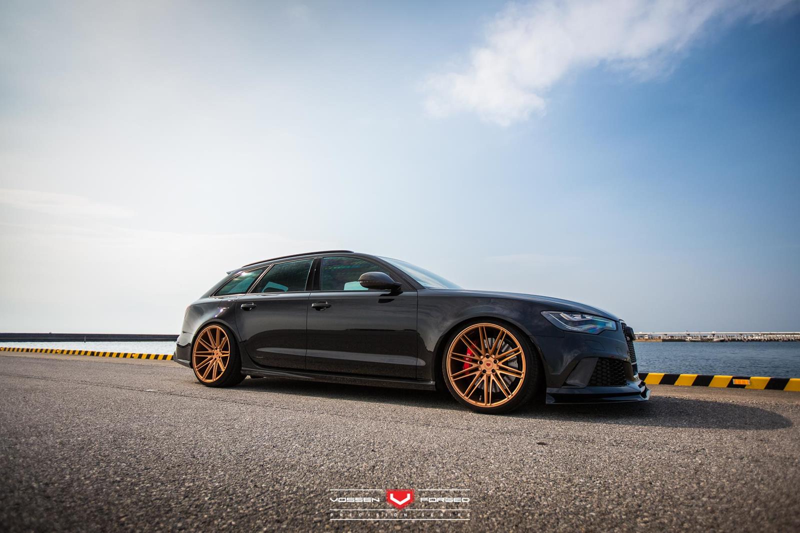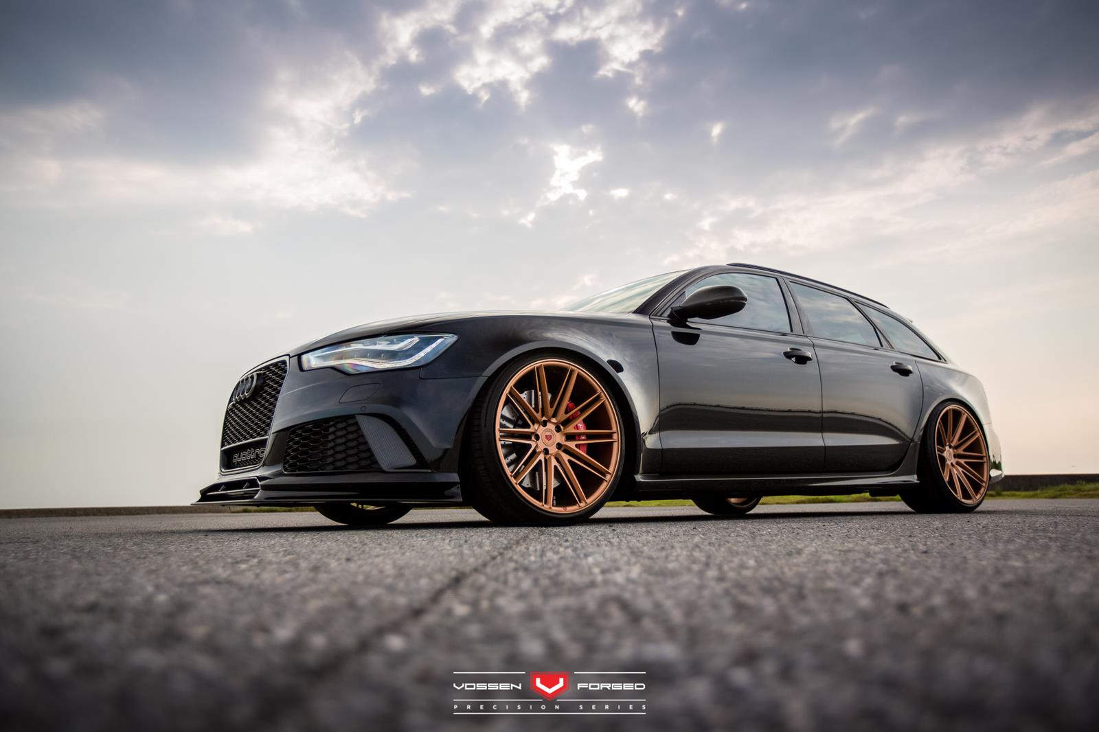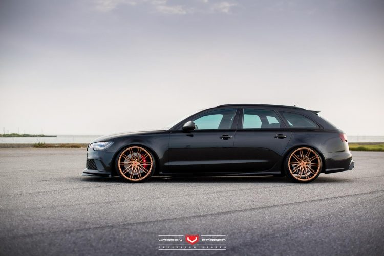 Auf gesellige 560 PS bringt es der aktuelle Audi RS6 Avant mit seinem Vierliter-V8-Biturbo unter der Haube. Als performance-Modell leistet das Aggregat sogar 605 PS. In jedem Fall dürfte der dicke Kombi also die linke Spur auf der Autobahn für sich beanspruchen dürfen. Und auch Ampelduelle sind dank Power und Allradantrieb seine Spielwiese. Wer der Optik noch etwas auf die Sprünge helfen will, der kann sich hier einmal anschauen, wie sich große, broncefarbene Felgen (von Vossen Wheels) auf dem RS6 machen würden.