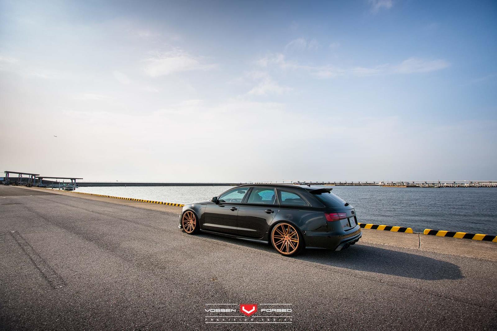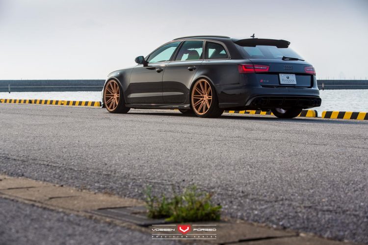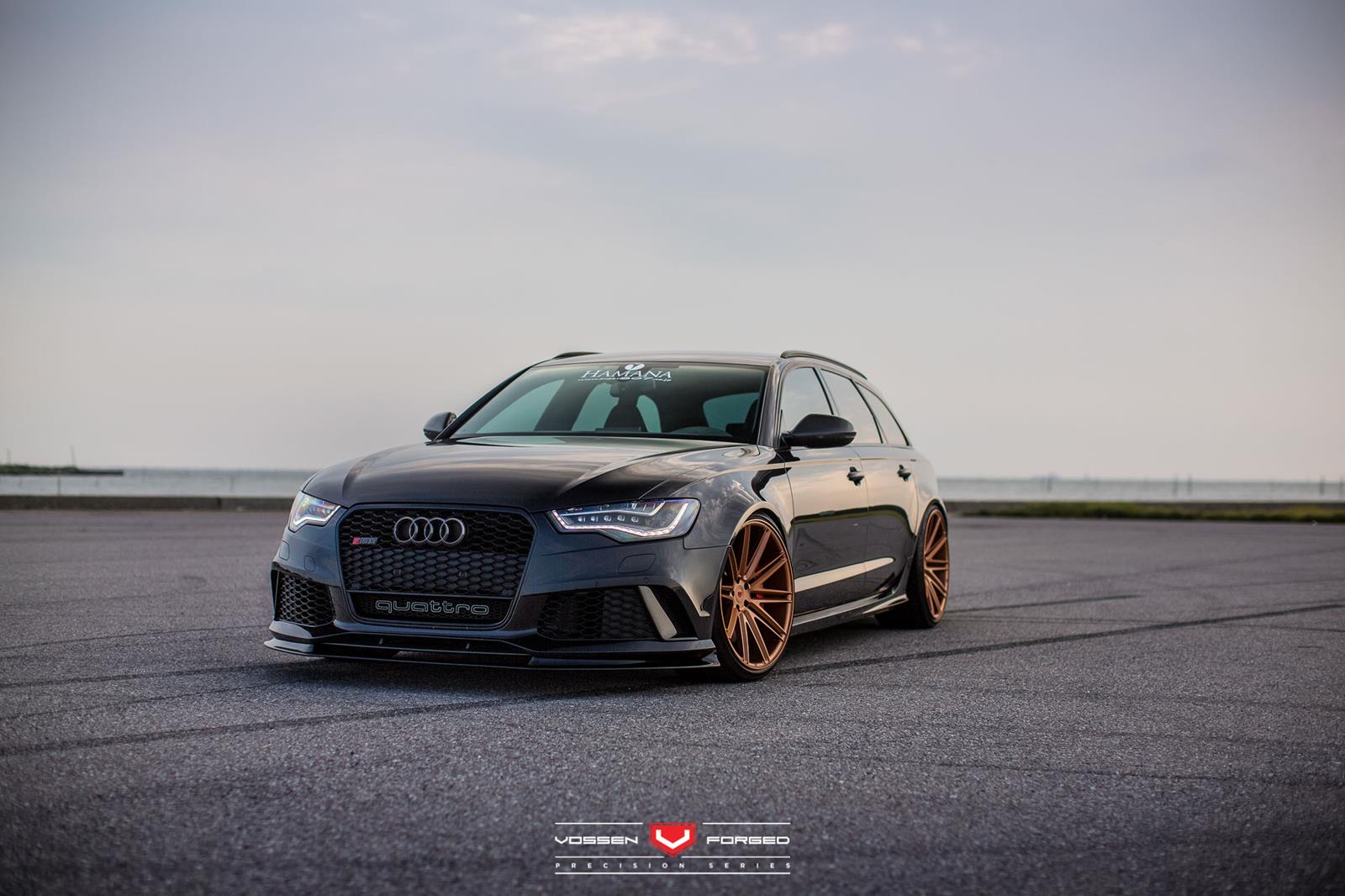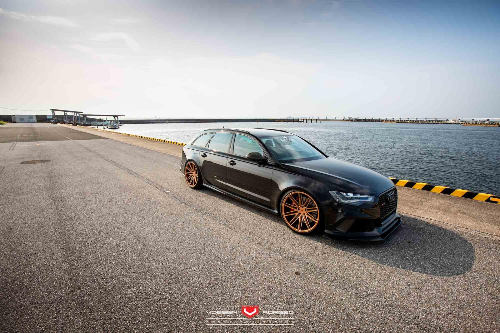 Auf gesellige 560 PS bringt es der aktuelle Audi RS6 Avant mit seinem Vierliter-V8-Biturbo unter der Haube. Als performance-Modell leistet das Aggregat sogar 605 PS. In jedem Fall dürfte der dicke Kombi also die linke Spur auf der Autobahn für sich beanspruchen dürfen. Und auch Ampelduelle sind dank Power und Allradantrieb seine Spielwiese. Wer der Optik noch etwas auf die Sprünge helfen will, der kann sich hier einmal anschauen, wie sich große, broncefarbene Felgen (von Vossen Wheels) auf dem RS6 machen würden.
