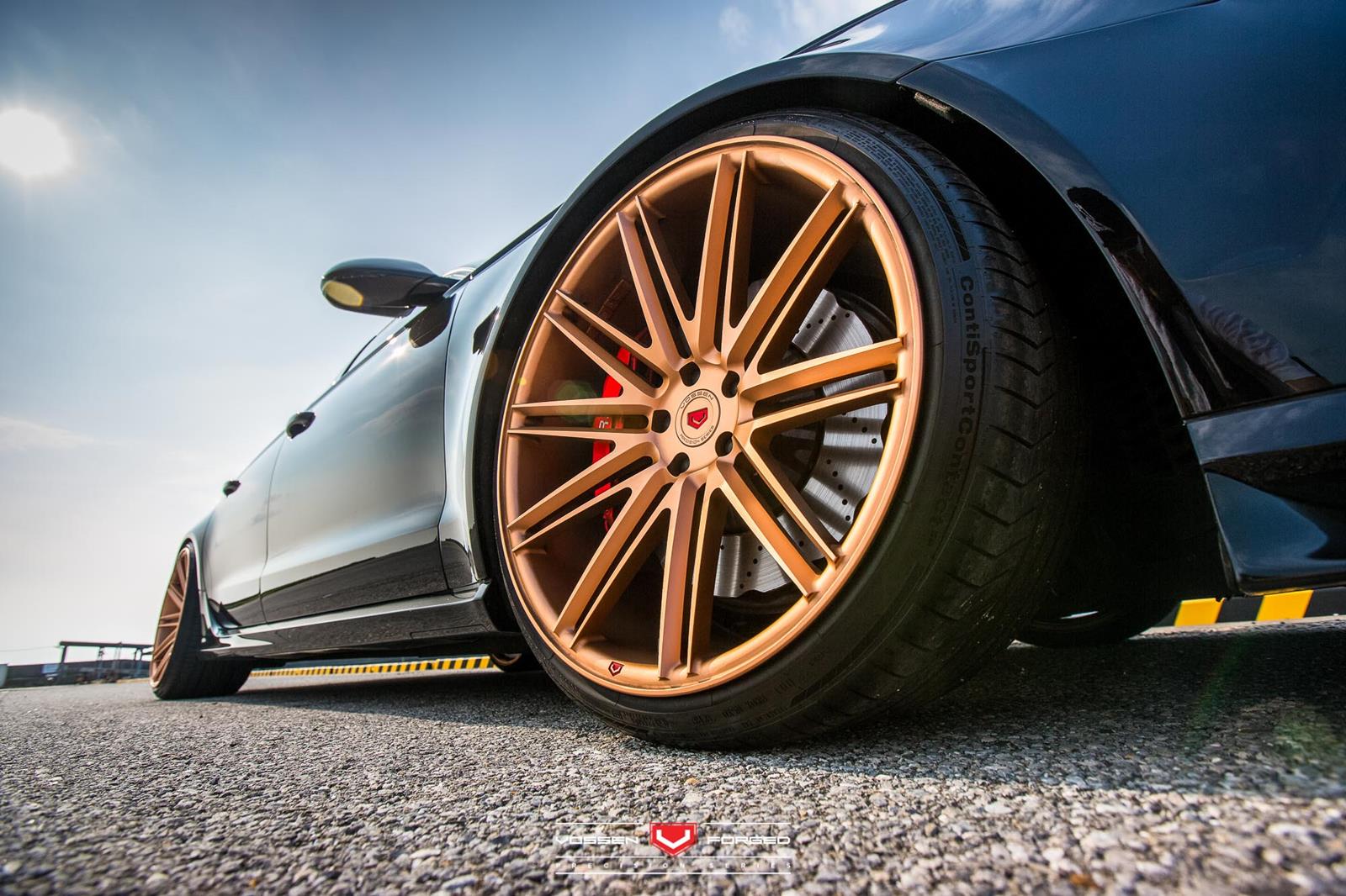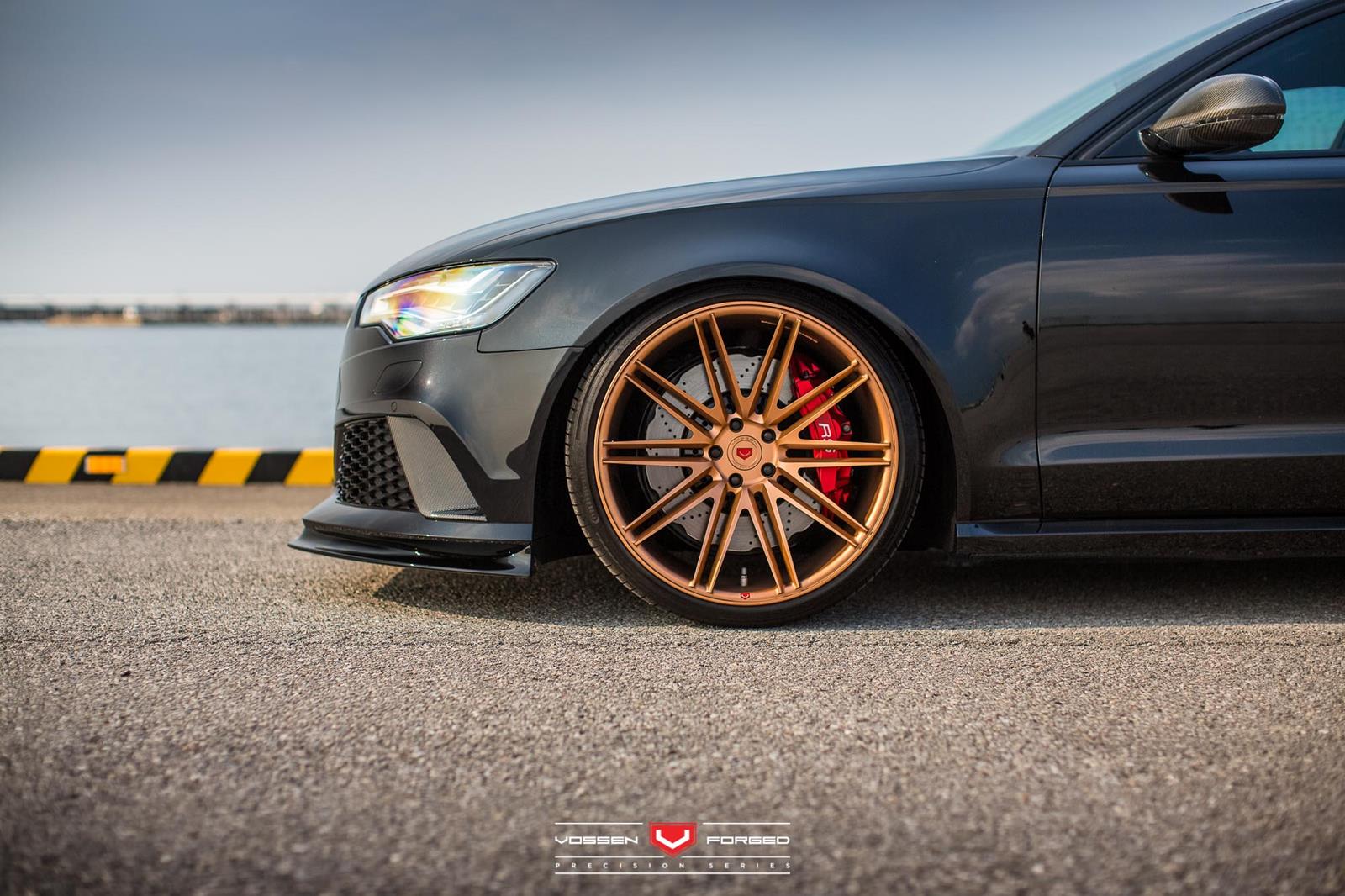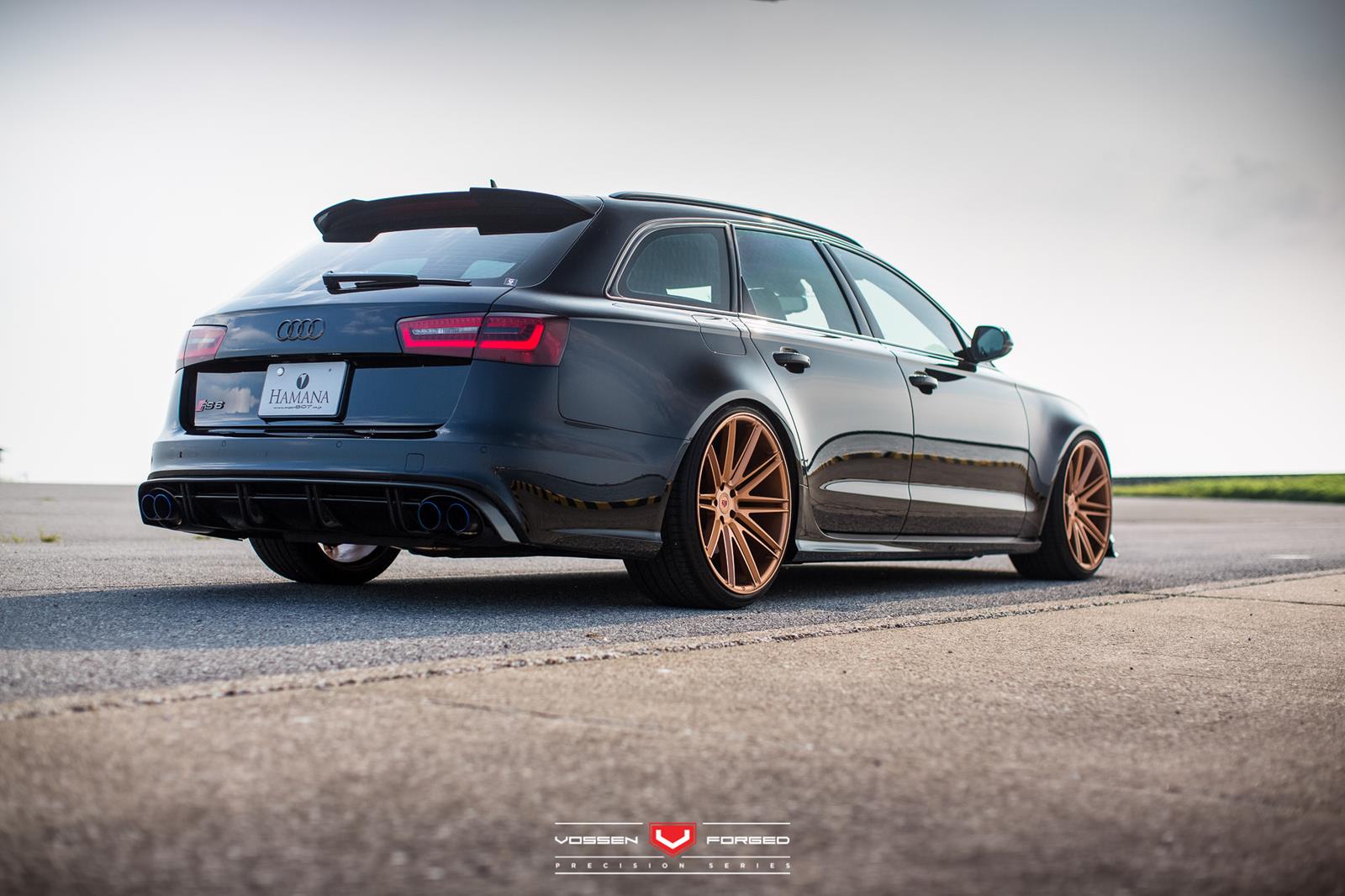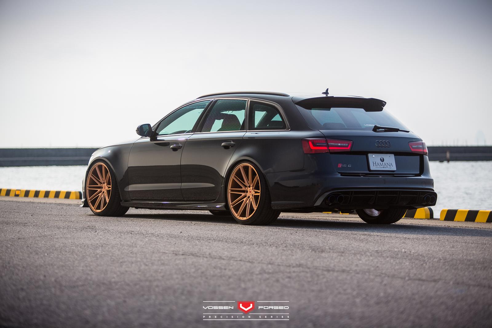 Auf gesellige 560 PS bringt es der aktuelle Audi RS6 Avant mit seinem Vierliter-V8-Biturbo unter der Haube. Als performance-Modell leistet das Aggregat sogar 605 PS. In jedem Fall dürfte der dicke Kombi also die linke Spur auf der Autobahn für sich beanspruchen dürfen. Und auch Ampelduelle sind dank Power und Allradantrieb seine Spielwiese. Wer der Optik noch etwas auf die Sprünge helfen will, der kann sich hier einmal anschauen, wie sich große, broncefarbene Felgen (von Vossen Wheels) auf dem RS6 machen würden.