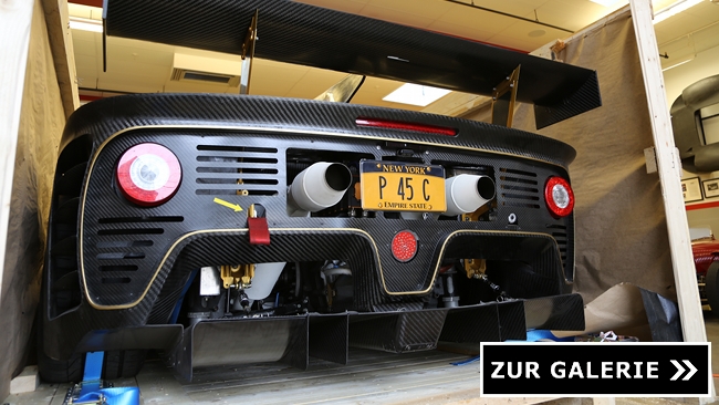 Zum ersten Mal in ihrer bisher noch kurzen Geschichte stehen der Ferrari P4/5 und der ebenfalls einzigartige P4/5 Competizione zusammen in der Garage ihres Besitzers Jams Glickenhaus. Nachdem die Rennversion bei diversen Rennveranstaltungen rund um den Globus unterwegs war, ist sie nun in ihrem neuen Übergangszuhause angekommen. Das war Grund genug für den Eigner, diesen Moment gebührend mit einer kleinen Bildergalerie zu feiern.Der carbonschwarze P4/5 Competizione, der – anders als das Grundmodell P4/5 – nicht von Ferrari gebaut wurde und auf einem F430 Scuderia statt auf einem Enzo basiert, trägt bisher den Titel des schnellsten Ferraris auf der Nürburgring Nordschleife. Das Einzelstück trat 2011 und 2012 beim 24h-Rennen und in weiteren Rennveranstaltungen an und belegte regelmäßig vordere Plätze, auch wenn es nie zu Spitzenplatzierungen reichte. Das mit KERS bestückte und einem 563 PS starken, vier Liter großen Achtzylinder befeuerte Fahrzeug wird ständig vom hauseigenen Team der Scuderia Glickenhaus in Zusammenarbeit mit italienischen Tunern weiterentwickelt. Außerdem rumort es weiterhin in der Szene: James Glickenhaus soll für 2014 einen weiteren, noch schnelleren Pfeil im Köcher haben.