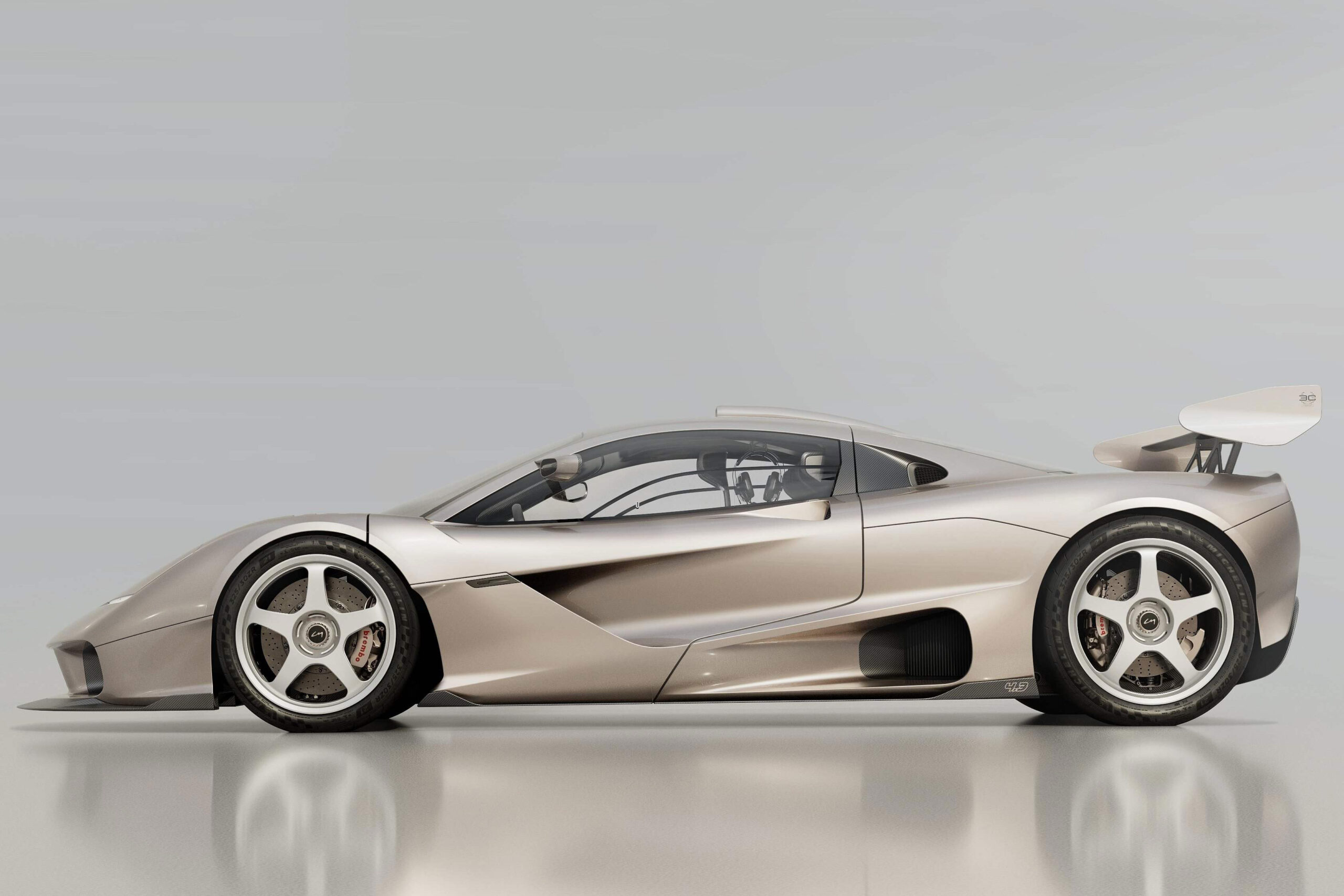 Technisch ist der GMA S1 LM konsequent auf Performance getrimmt. Aerodynamisch erzeugen ein massiver Frontsplitter, der große Heckflügel und ein Diffuser reichlich Abtrieb. Unter der Haube arbeitet – typisch GMA – ein frei saugender V12, kombiniert mit einem manuellen Sechsganggetriebe. Der Hubraum wurde auf 4,3 Liter erweitert, die Leistung soll bei über 690 PS liegen.