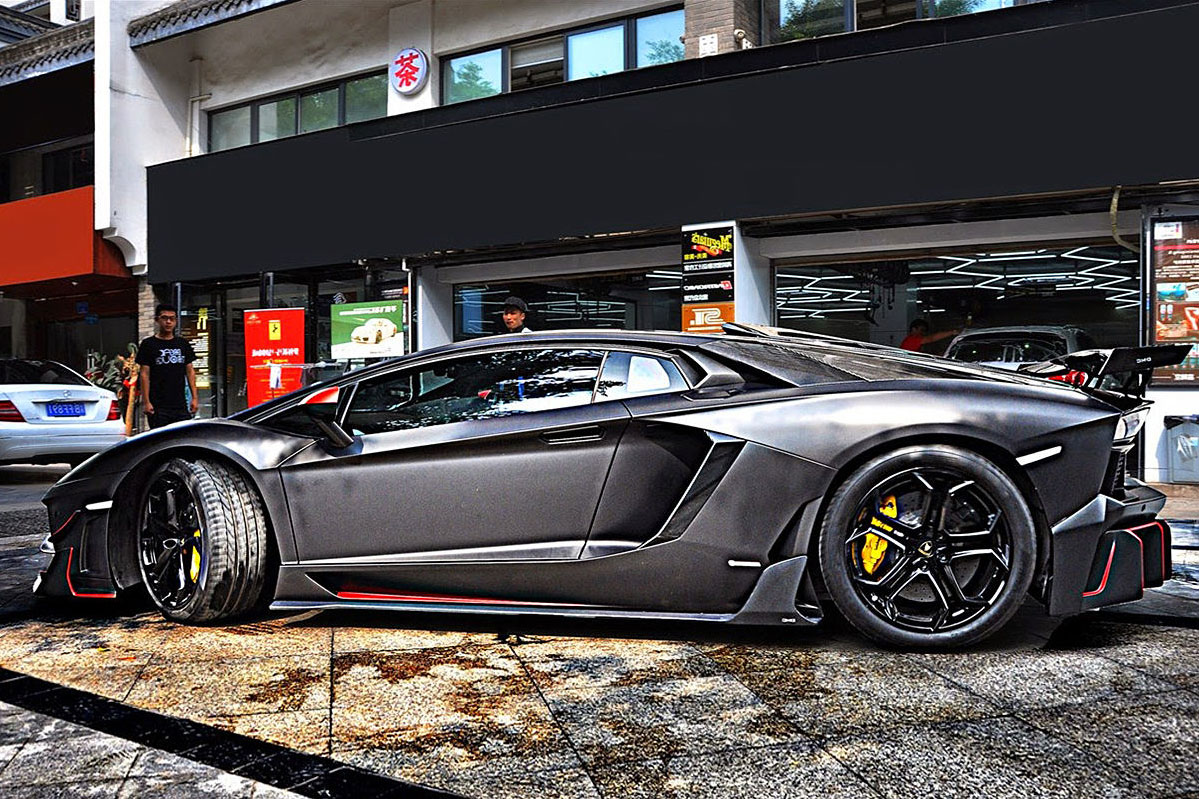Hauptverantwortlich dafür ist das extreme Bodykit, das die ohnehin schon kantige Grundform des Lambos noch einmal gehörig nachschärft. Auffälligstes Merkmal ist die komplett neu gezeichnete Frontpartie, während am Heck vor allem der monströse Diffusor für Aufmerksamkeit sorgt. Unter der neuen Carbon-Abdeckung verabreichten die Ingenieure dem 6,5-Liter-V12 eine Twin-Turbo-Aufladung, die zumindest offiziell 288 zusätzliche PS mobilisieren soll. Inoffiziell knackte der V12 auch schon die 1000 PS Marke, da aber im größten Absatzmarkt China die Zahl „8“ als Glückszahl gilt, hat man sich in diesem Fall auch mit 988 PS zufrieden gegeben.