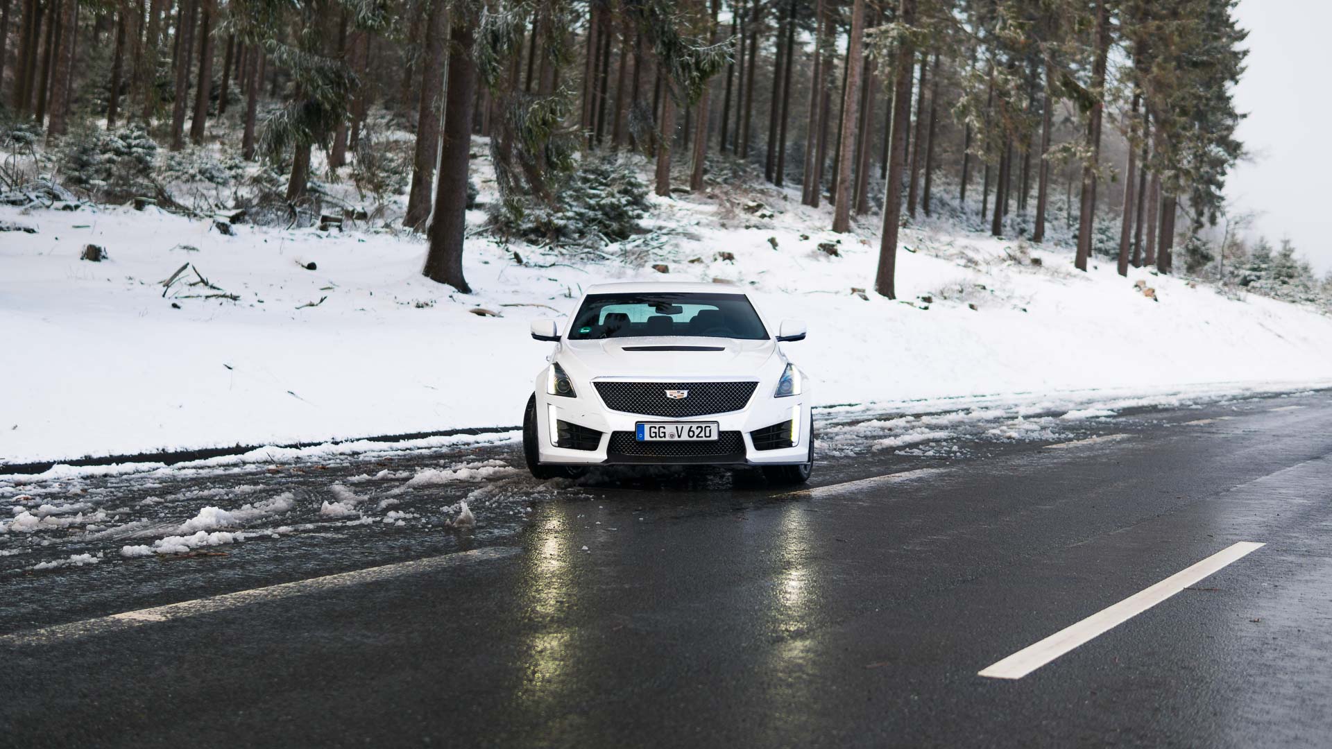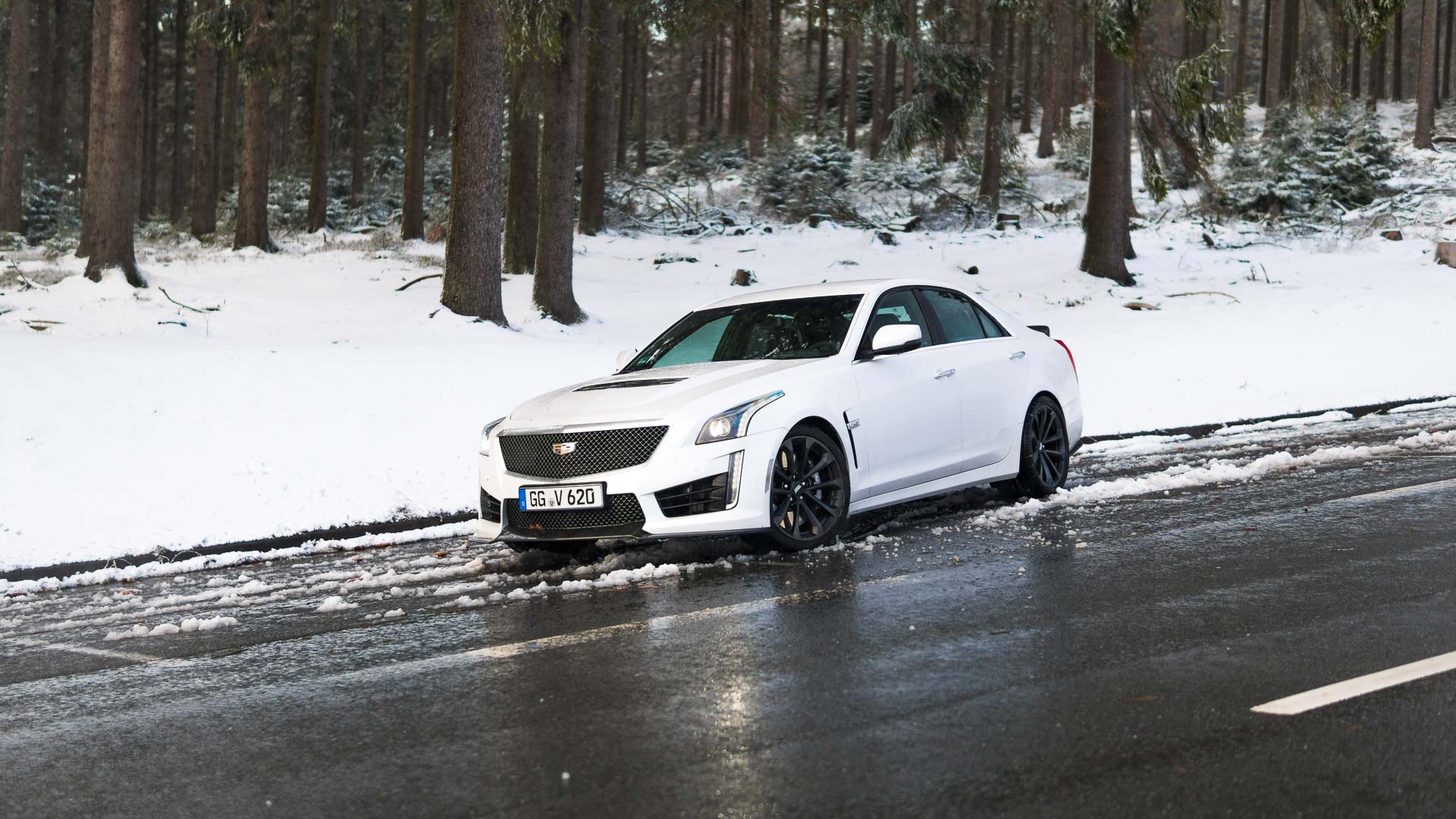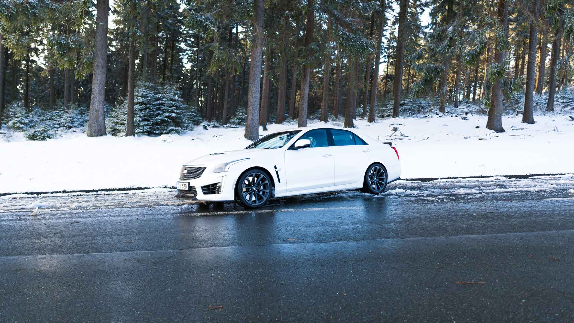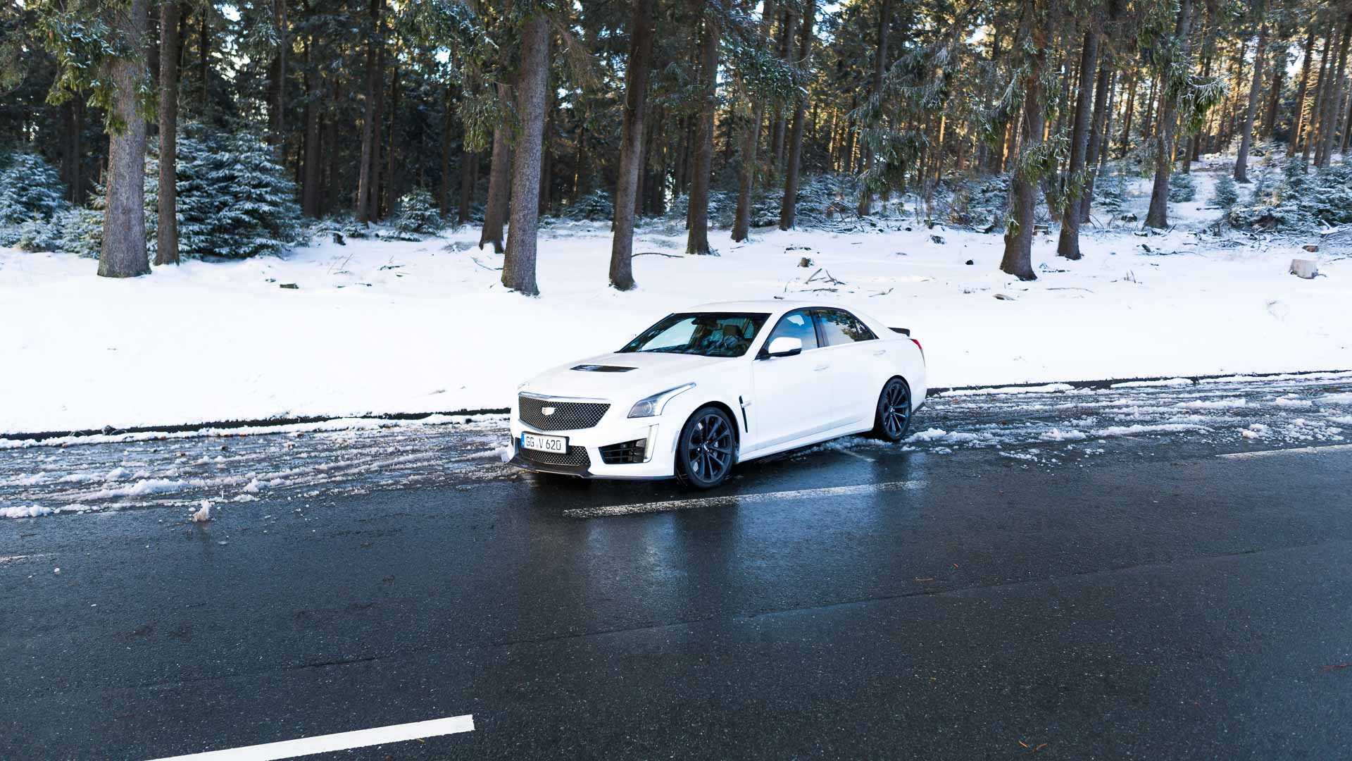 Dieses Auto mit Handschaltgetriebe hätte zwar dazu geführt, dass sämtliche Petrolheads auf Knien zur Zentrale in New York gerutscht wären, um noch einen CTS-V zu ergattern. Dass die Wahl des Automatikgetriebes aber nicht die schlechteste Idee ist, zeigt sich beim Tritt aufs Gaspedal. Denn egal ob bei 50 oder 150 Stundenkilometern, hat man auch bei dem kleinsten Regentropfen auf der Straße alle Hände voll zu tun, die 1,9-Tonnen-Fuhre auf der Straße zu halten. Die Hinterachse ist selbst winterbereift mit der Kraft vollkommen überfordert. Man selbst wäre es auch, müsste man noch dazu im Getriebe den richtigen Gang finden. Da tut es gut, dass die altbekannte Achtgang-Hydramatic dies wenigstens meistens zuverlässig übernimmt. Sie machte allerdings mit leichtem Wandlerschlupf schon jetzt darauf aufmerksam, dass ihr nicht das längste Autoleben vergönnt sein dürfte.