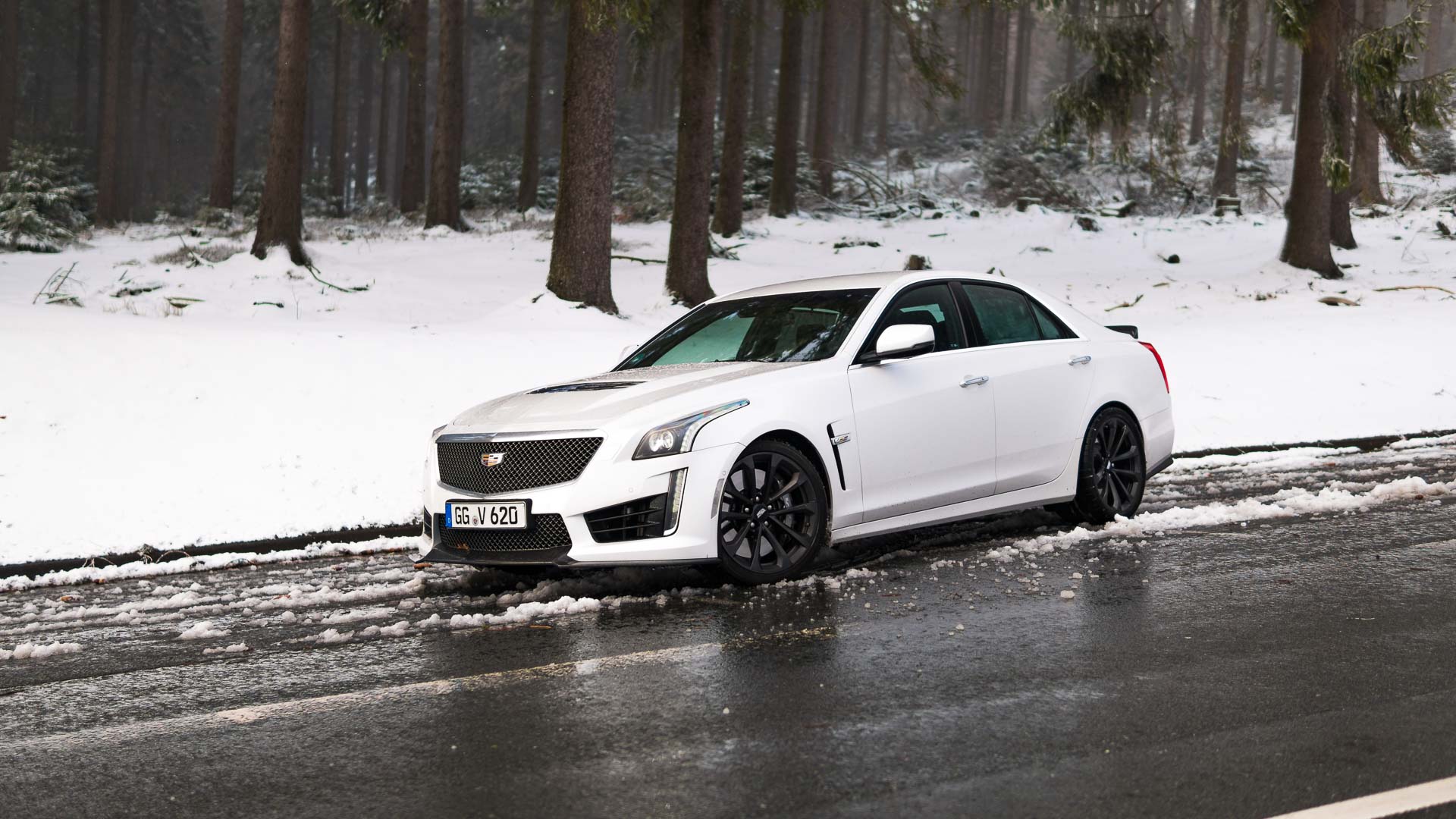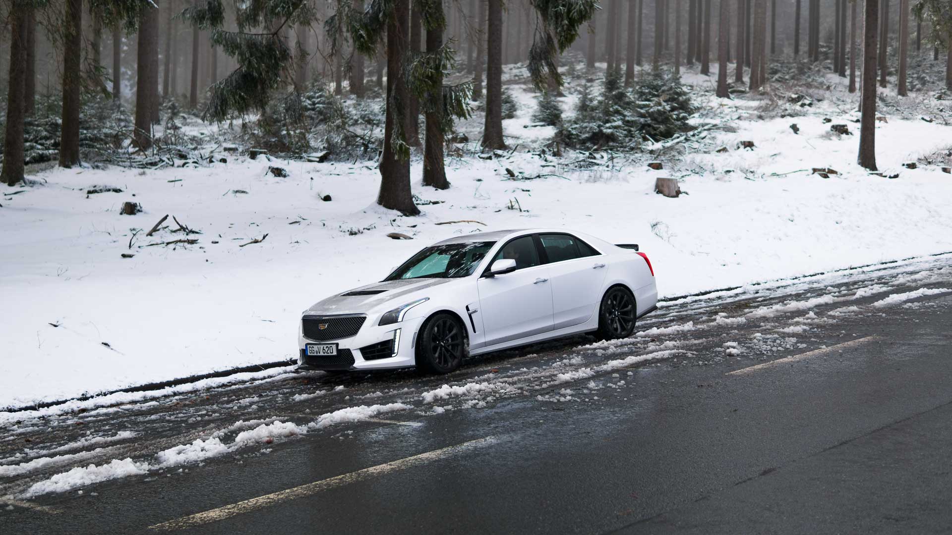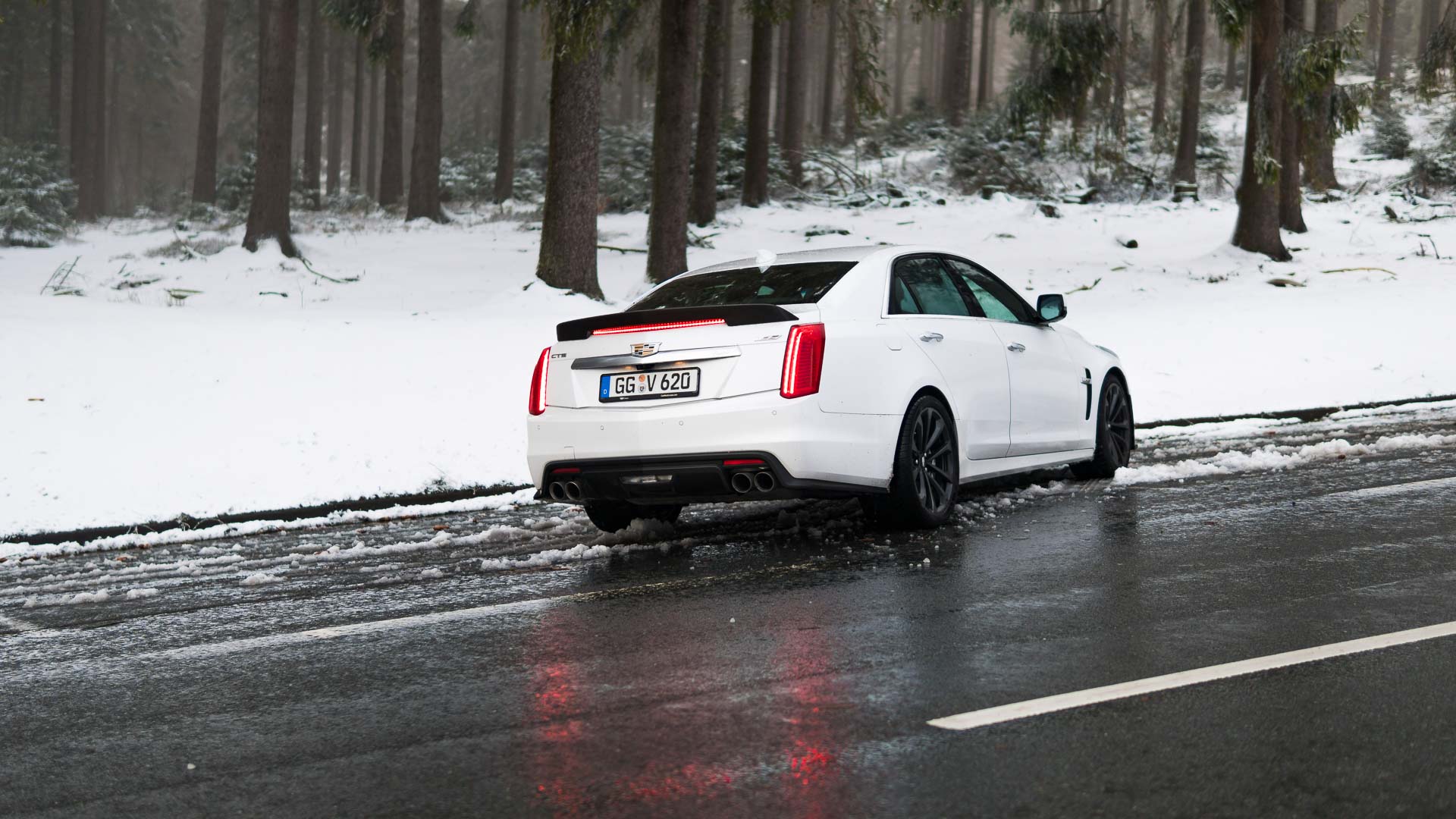 Dieses Auto mit Handschaltgetriebe hätte zwar dazu geführt, dass sämtliche Petrolheads auf Knien zur Zentrale in New York gerutscht wären, um noch einen CTS-V zu ergattern. Dass die Wahl des Automatikgetriebes aber nicht die schlechteste Idee ist, zeigt sich beim Tritt aufs Gaspedal. Denn egal ob bei 50 oder 150 Stundenkilometern, hat man auch bei dem kleinsten Regentropfen auf der Straße alle Hände voll zu tun, die 1,9-Tonnen-Fuhre auf der Straße zu halten. Die Hinterachse ist selbst winterbereift mit der Kraft vollkommen überfordert. Man selbst wäre es auch, müsste man noch dazu im Getriebe den richtigen Gang finden. Da tut es gut, dass die altbekannte Achtgang-Hydramatic dies wenigstens meistens zuverlässig übernimmt. Sie machte allerdings mit leichtem Wandlerschlupf schon jetzt darauf aufmerksam, dass ihr nicht das längste Autoleben vergönnt sein dürfte.