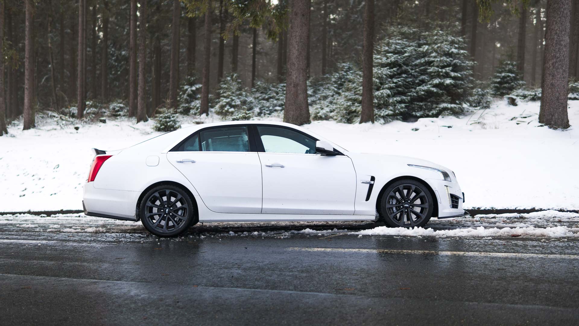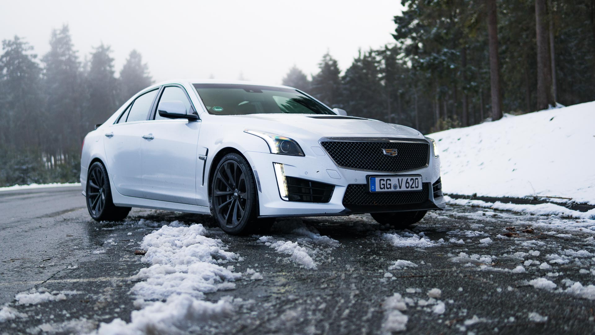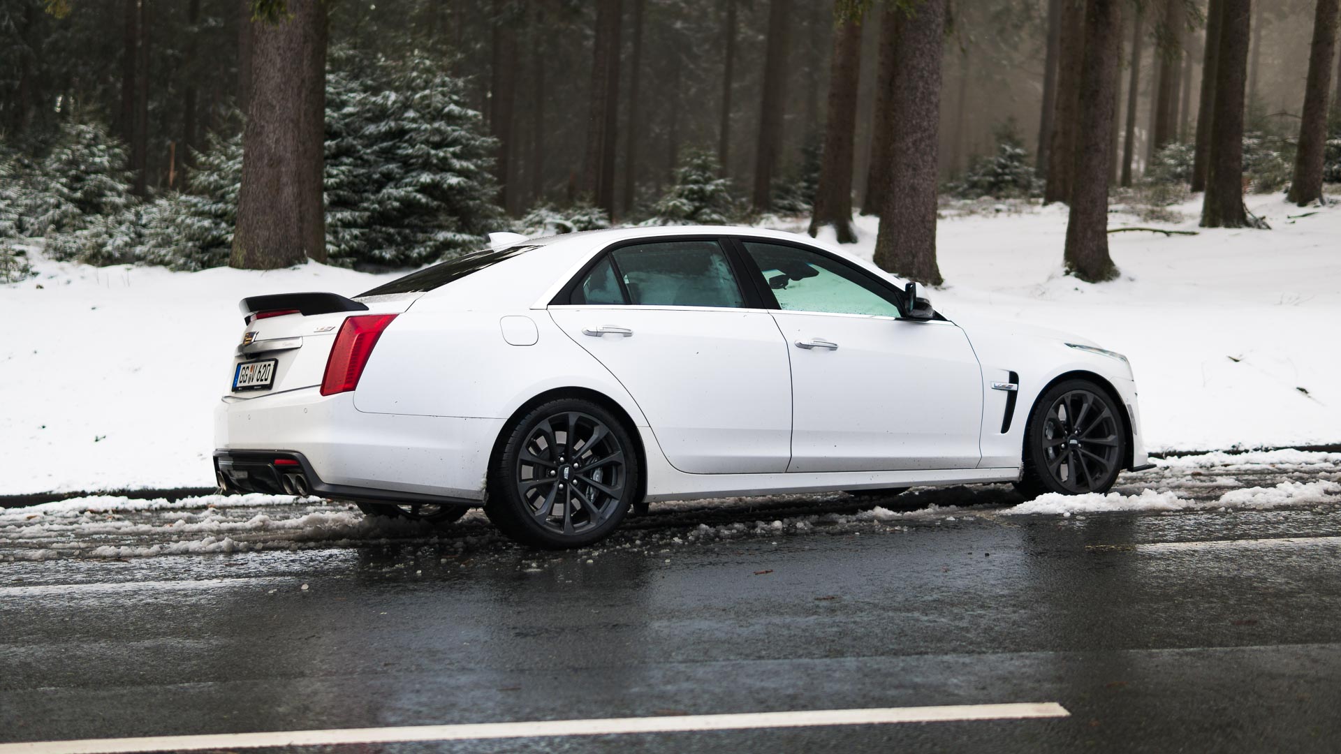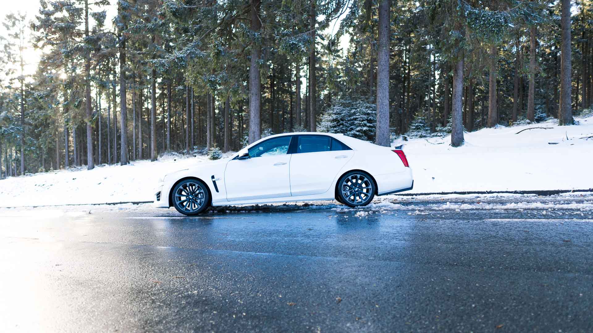 Dieses Auto mit Handschaltgetriebe hätte zwar dazu geführt, dass sämtliche Petrolheads auf Knien zur Zentrale in New York gerutscht wären, um noch einen CTS-V zu ergattern. Dass die Wahl des Automatikgetriebes aber nicht die schlechteste Idee ist, zeigt sich beim Tritt aufs Gaspedal. Denn egal ob bei 50 oder 150 Stundenkilometern, hat man auch bei dem kleinsten Regentropfen auf der Straße alle Hände voll zu tun, die 1,9-Tonnen-Fuhre auf der Straße zu halten. Die Hinterachse ist selbst winterbereift mit der Kraft vollkommen überfordert. Man selbst wäre es auch, müsste man noch dazu im Getriebe den richtigen Gang finden. Da tut es gut, dass die altbekannte Achtgang-Hydramatic dies wenigstens meistens zuverlässig übernimmt. Sie machte allerdings mit leichtem Wandlerschlupf schon jetzt darauf aufmerksam, dass ihr nicht das längste Autoleben vergönnt sein dürfte.