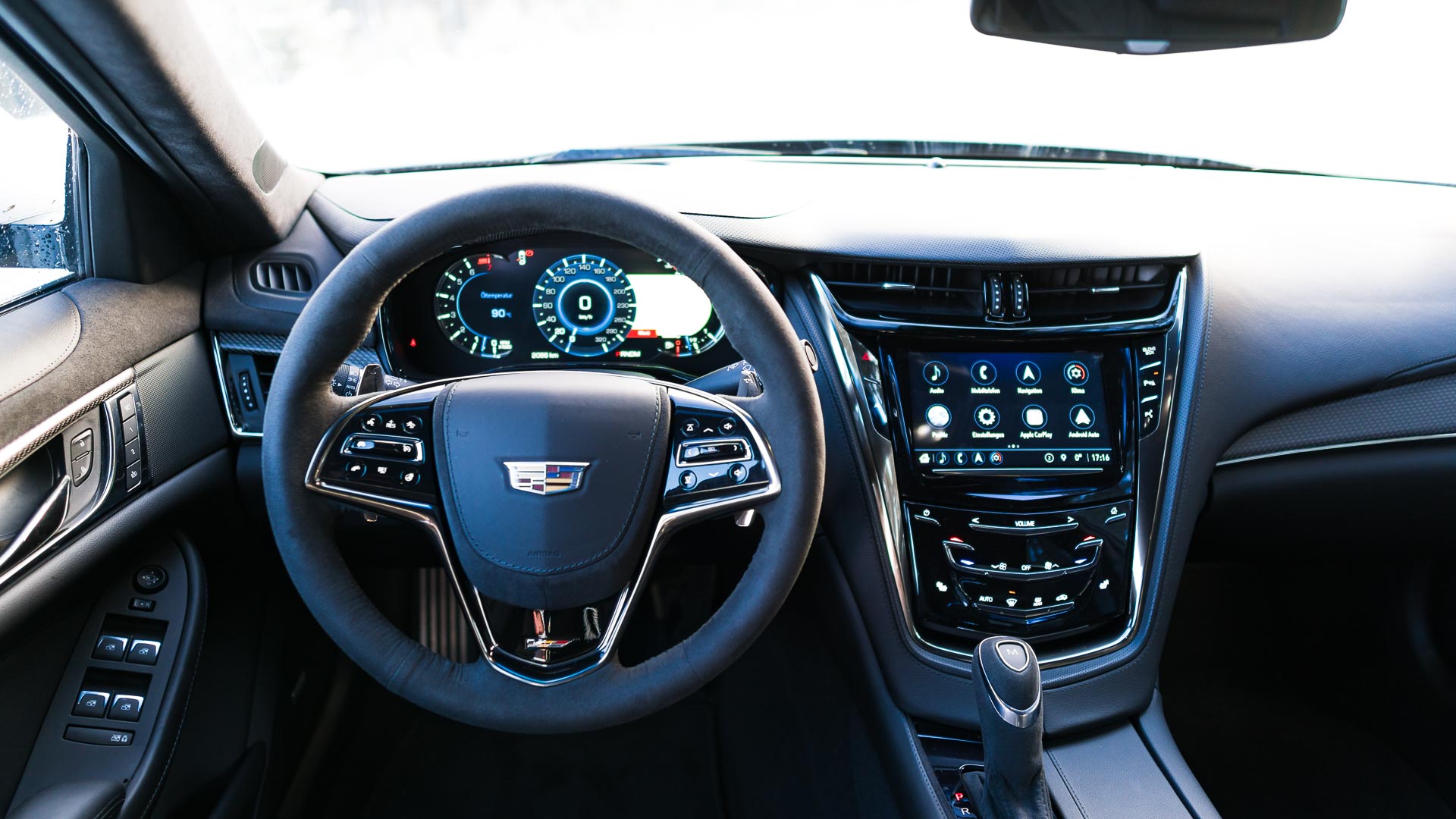 Doch zählt das wirklich? Wollen wir denn immer das perfekte Auto fahren? Das Auto, das alles kann? Wir haben uns klar entschieden: Wir wollen das nicht. Nein, der Cadillac CTS-V ist bei weitem nicht perfekt. Zu wenig Grip bei zu viel Leistung ist selten die beste Kombination. Aber dafür die spaßigste, wenn man weiß, was man tut. Der Achtgangautomat könnte wenigstens so intelligent sein, wie er beworben wird. Und wäre er besser verarbeitet (bei diesem, neuen, Testwagen löste sich mal wieder der Alcantarabezug des Lenkrads), hätten wir noch einen Grund weniger zu meckern. Aber: who cares, bei 649 PS und 880 Newtonmetern? Sogar der ehelichen Finanzverwaltung kann man diese Daten ordentlich verkaufen: Unser Testverbrauch betrug 14,1 Liter pro 100 Kilometer. Davon die meisten Werte unterhalb der 13. Nur ein Ausreißer mit 20,3 im Durchschnitt, da hatten wir den „240 km/h wegen Winterreifen“-Aufkleber noch nicht gesehen…