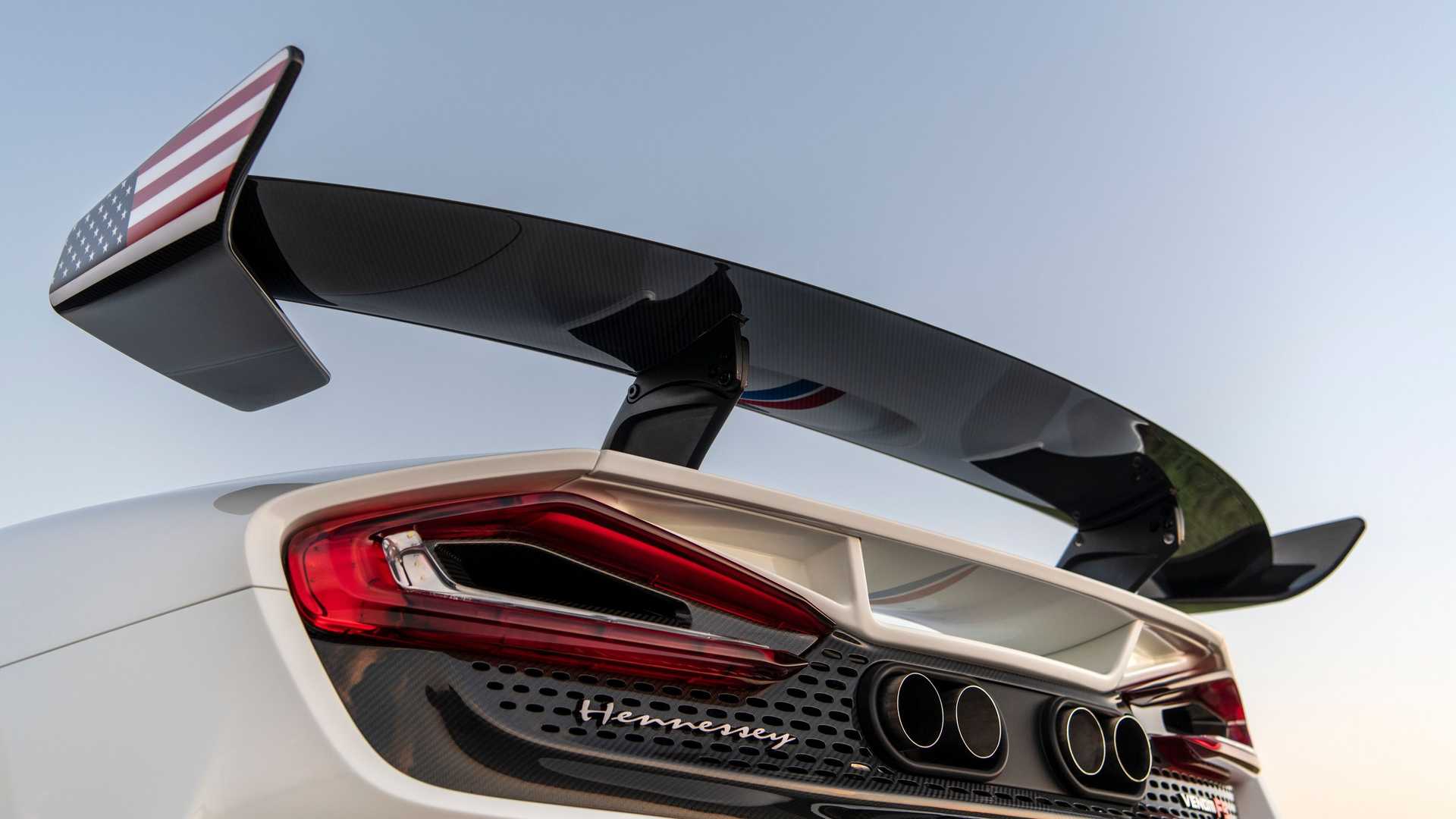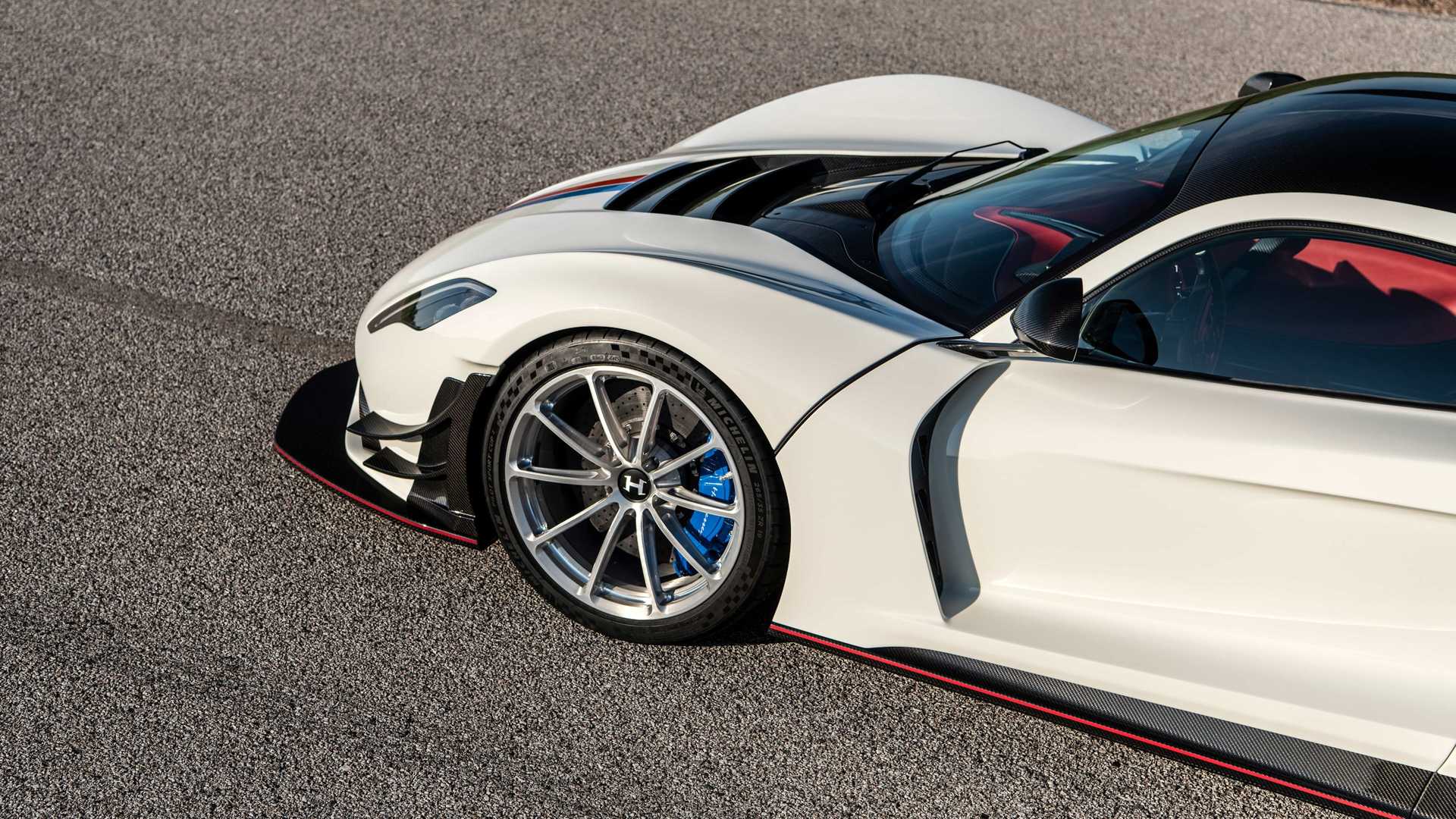 Da der Revolution dann auch noch etwas abgespeckt hat, bekommt es diese Power nun mit nur noch 1.360 Kg zu tun. Der neue, große Heckflügel sorgt dafür, dass bei Tempo 300 zudem 362 Kilogramm Abtrieb erzeugt werden. Bei Tempo 400 sind es bereits 635 Kilogramm. Ergänzt wird das Aeroprogramm durch einen großen Carbon-Frontsplitter, einen Heckdiffusor, Winglets an den Vorderrädern und eine Dachhutze, die Luft in den Motorraum umleitet.
