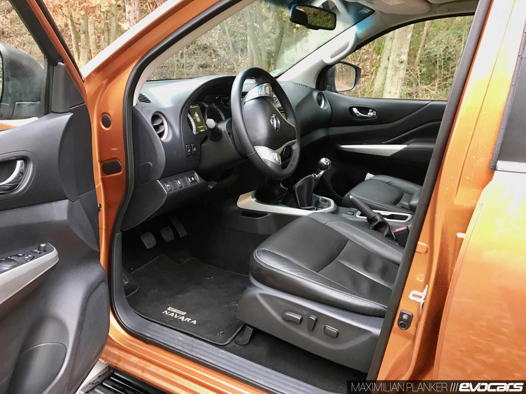 Auch im Inneren gibt der NP300 keine Rätsel auf. Gut, die Verarbeitungsqualität und die Materialauswahl hat sich nach unserem Befinden schon verbessert, zumal wir die höchste Ausstattungslinie TEKNA fuhren – sprich: inklusive Lederausstattung, Glasdach, Klimaautomatik und großem Navi. Aber dennoch merkt man, dass man in einem Arbeitstier sitzt. Der Innenspiegel klebt noch ganz alleine und ohne kiloweise Kameras und Sensoren an der Scheibe, herkömmliche Instrumente zeigen Drehzahl und Geschwindigkeit und ein stinknormaler Schalthebel ragt aus der Mittelkonsole. Hier ist alles auf Langlebigkeit ausgelegt.