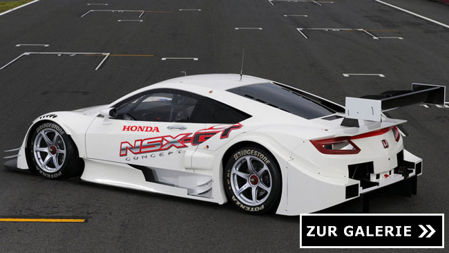 Der weiße Rennwagen ist nach dem 2014 in Kraft tretenden GT500-Reglement der populären Super-GT-Serie aufgebaut und verfügt demnach über einen Zweiliter-Vierzylinder-Mittelmotor. Das aufgeladene und direkteinspritzende Aggregat wird von einem Rennsport-Hybrid-System unterstützt, doch sowohl zum elektrischen Antrieb, wie auch zum Verbrenner hält Honda noch sämtliche technischen Daten zurück. Eins ist jedoch sicher: Langsam ist der neue NSX nicht, denn auf den ersten Runden im Rahmen des Super-GT-Rennens in Suzuka macht das Concept-GT einen guten Eindruck. Wir haben die Videos des Testlaufs für Euch zusammengestellt und reichen die technischen Daten natürlich selbstverständlich nach.