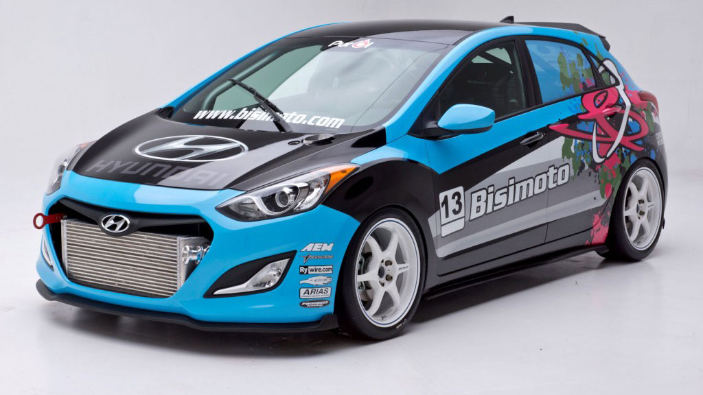 Der kalifornische Tuner und Zubehörhersteller Bisimoto Engineering ist in den USA bekannt für seine schrägen und vor allem kompromisslosen Umbauten. Anlässlich der 2012er SEMA, die vor einigen Wochen stattfand, präsentierte der Tuner einen ganz besonderen Hyundai, der nach dem Eingriff zu Recht das „Bisimoto-Logo“ tragen darf.