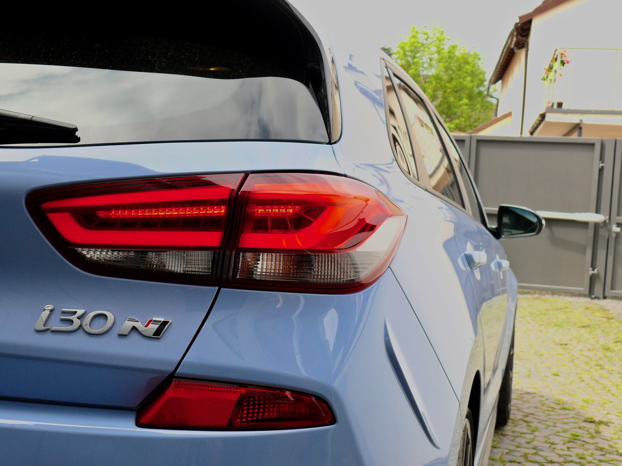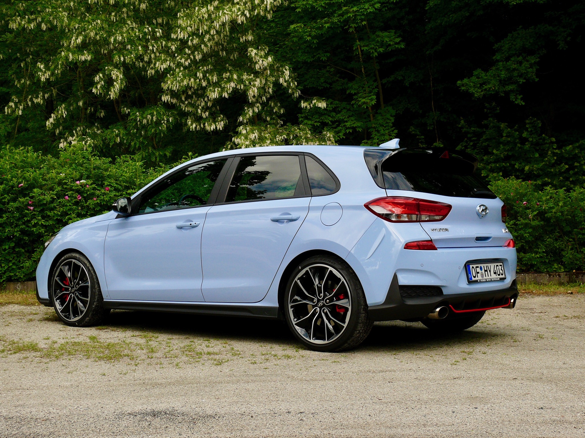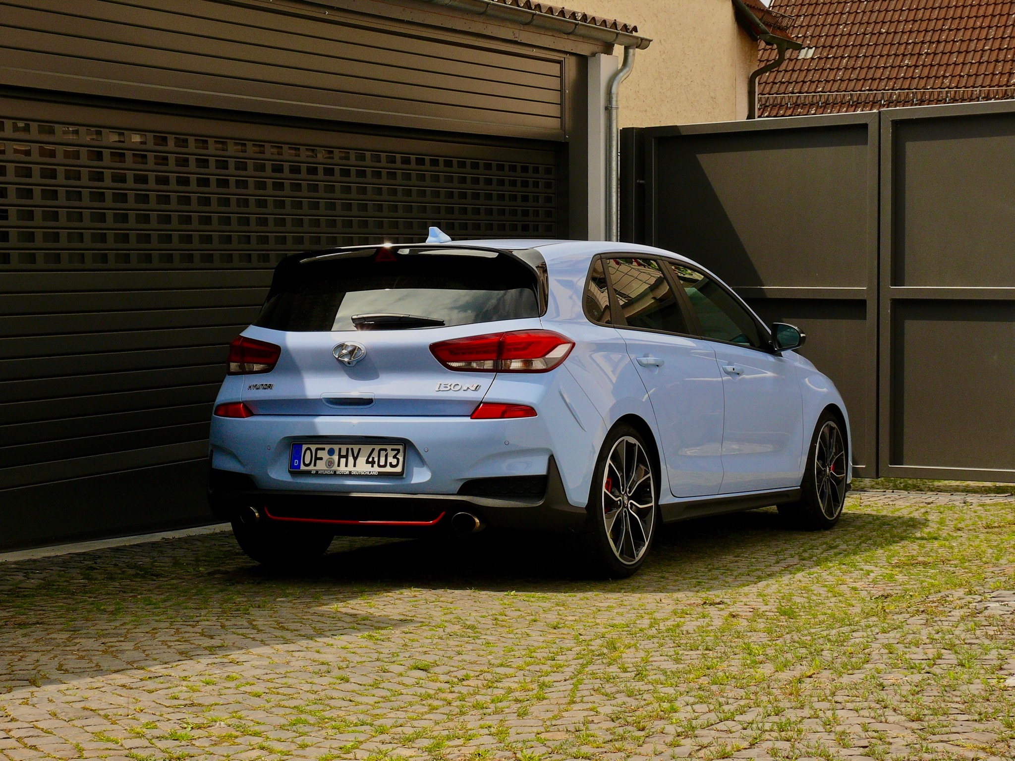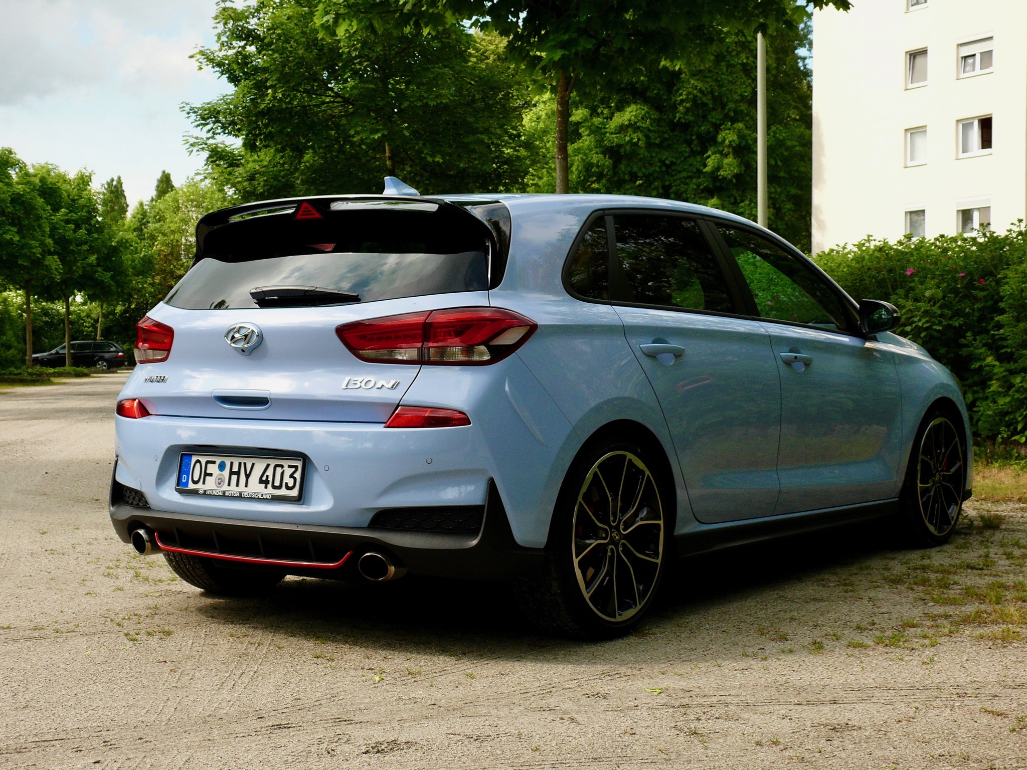 {1}Denn der Zweiliter mit dickem Turbo entfaltet seine Leistung zwar nicht erst nach dem üblichen Druckaufbauprozedere, sondern durchaus sehr linear. Was jedoch dazu führt, dass Du unweigerlich viel schneller bist, als es Dein Gefühl suggeriert. Nutzt Du den Schaltblitz bis zum letzten Aufblinken, stürmt der i30 N in gut sechs Sekunden auf 100 Km/h, doch es ist nicht die Längsdynamik, die am meisten Spaß macht. Es sind die Kurven. Denn den Pirelli-Sportreifen und des mechanischen Sperrdifferentials an der Vorderachse sei Dank gestalten sich Kurvenfahrten in der Regel so, dass man auf dem Fahrersitz gedanklich bremst, stattdessen aber lieber das Pedal ganz rechts benutzt. Ist man schnell genug damit, dreht der i30 schön in die Kurve ein, wandelt das anfänglich vorhandene Untersteuern in eine Neutralposition und schießt mit einem Geschwindigkeitsüberschuss aus der schnellen Rechts heraus, als besäße er einen standesgemäßen Allradantrieb. Das funktioniert mehr als wunderbar, solange der Asphalt trocken ist. Was uns für 14 Tage des Tests vergönnt blieb und wir somit über das Fahrverhalten bei Nässe jedenfalls nichts gegenteiliges aussprechen können.