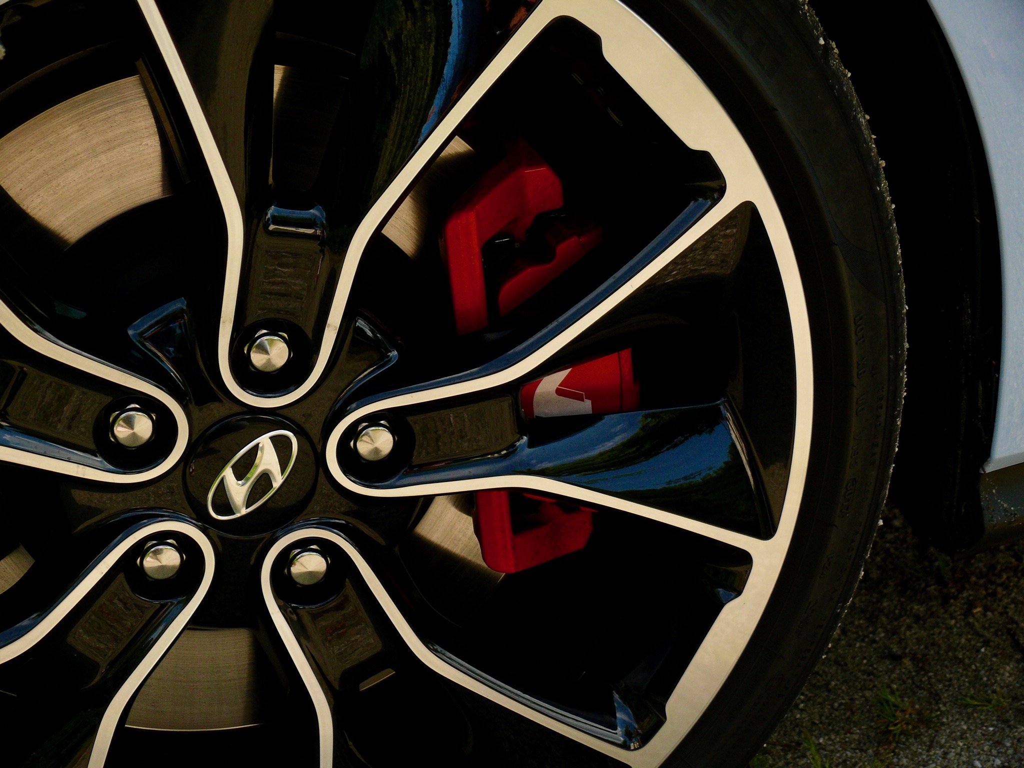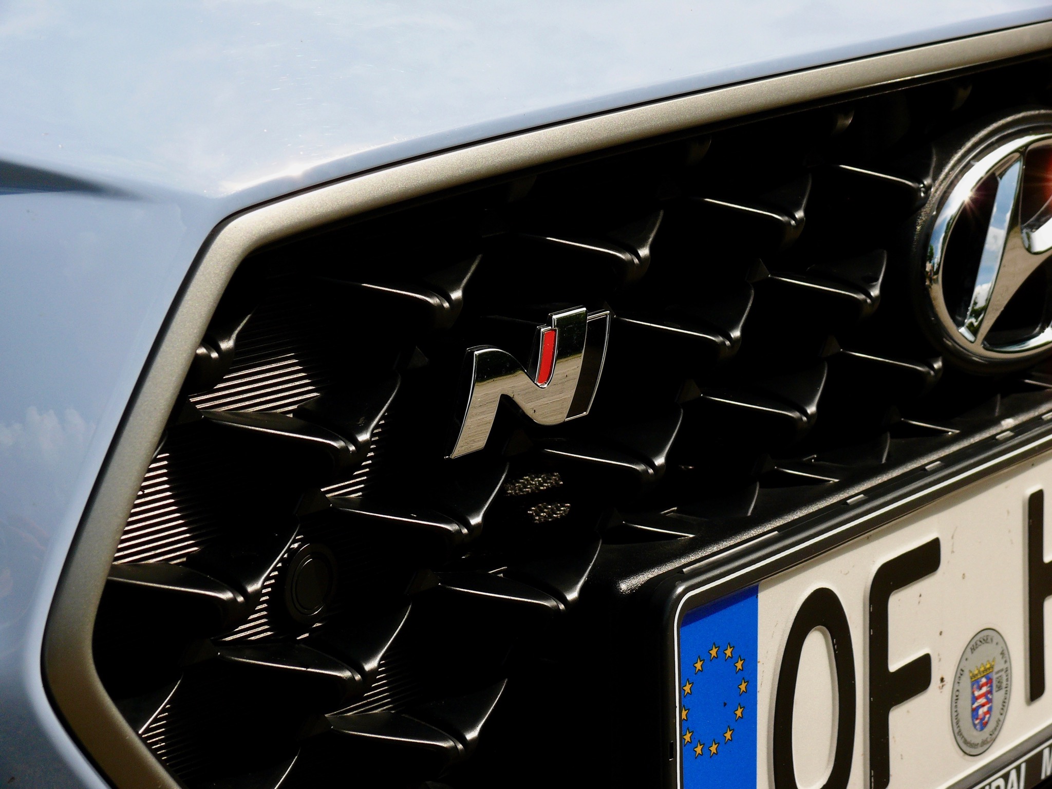 Solange diese Abstriche nicht im Kapitel „Fahrspaß“ zu machen sind, kommen wir damit auch bestens zurecht – und starten das Zweiliteraggregat, das mittels Turbolader auf satte 275 PS aufgeblasen wurde. Flugs den Knopf mit der Zielflagge am Lenkrad gedrückt, der serviert uns den i30 N Performance nämlich exakt so, wie wir ihn haben möchten: Gasannahme, Abgasanlage und Lenkung bitte in „Sport+“, das automatische Zwischengas stellen wir lieber aus, das elektronisch geregelte Sperrdifferential auf „Sport“ und das adaptive Fahrwerk bleibt dem Rücken zuliebe besser in der Normalposition. So röhren wir von unserem Parkplatz und haben schon ob des besagten Klangs ein gehöriges Grinsen im Gesicht. So und nicht anders sollte ein Hyundai klingen! Und nachdem wir mittels den umfangreichen Anzeigen die Öltemperatur positiv gecheckt und das Gaspedal durchgetreten haben, stellen wir auch fest: so und nicht anders sollte ein Hyundai gehen!
