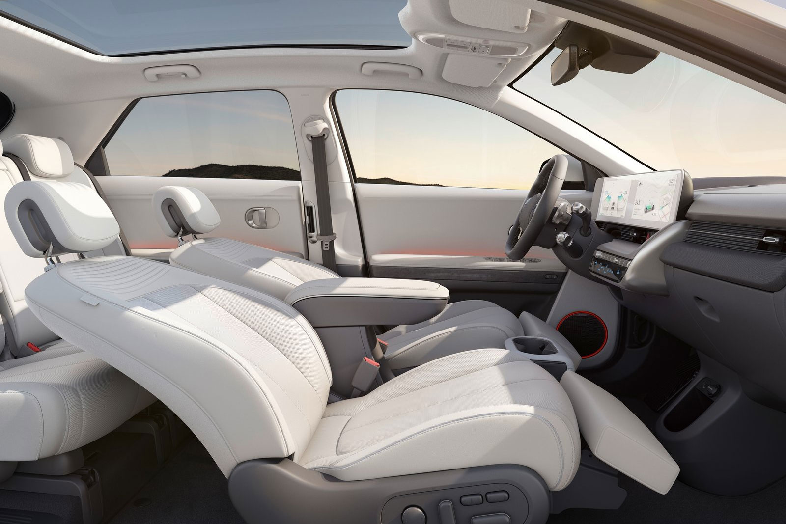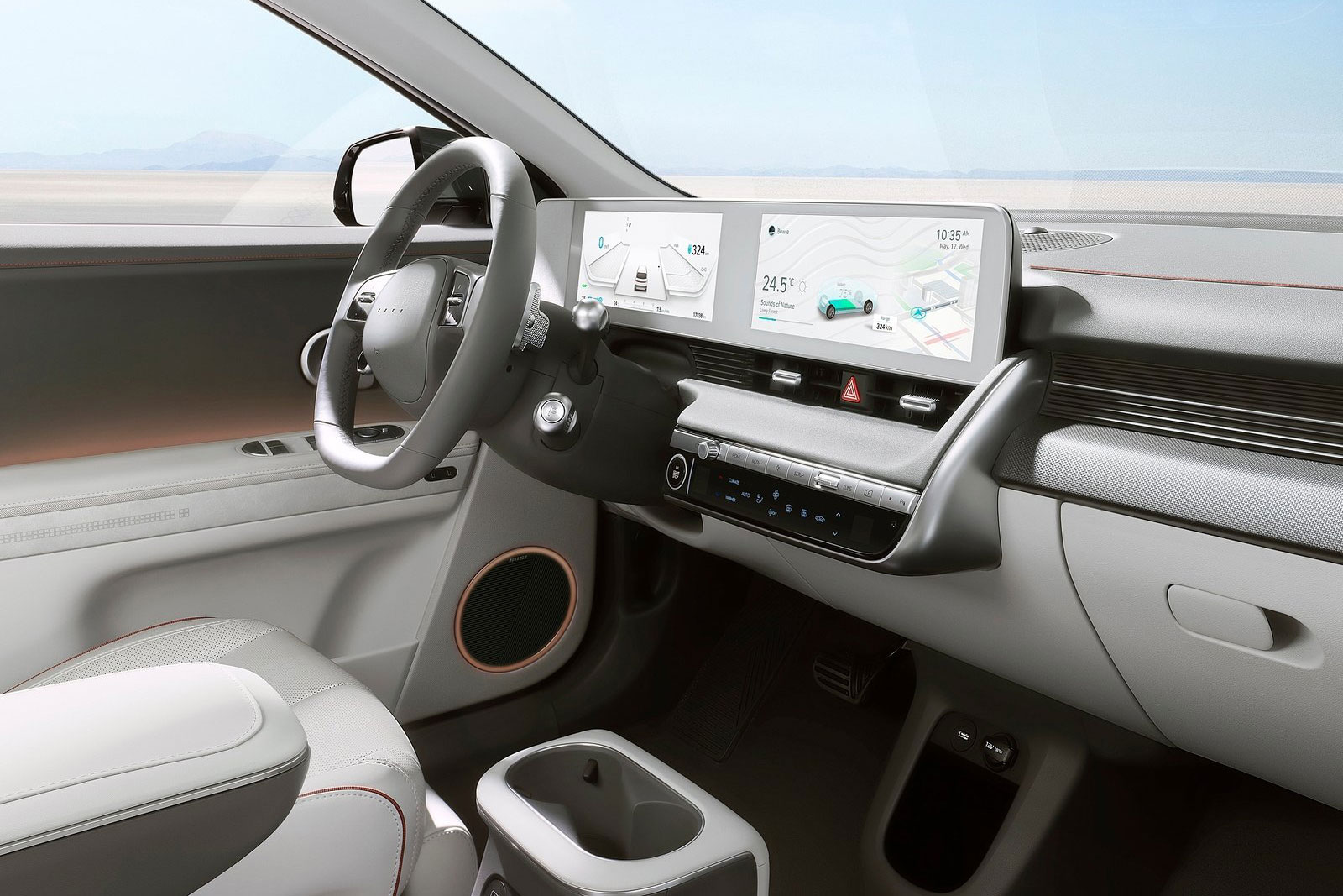 Zur Serienausstattung aller Hyundai IONIQ 5 zählen Voll-LED-Scheinwerfer, LED-Rückleuchten, 19-Zoll-Leichtmetallfelgen, zwei 12,25-Zoll-Bildschirme für das Cockpit und das Navigationssystem, das Hyundai Telematiksystem Bluelink, eine Rückfahrkamera, beheizbare Vordersitze, eine verschiebbare Rücksitzbank sowie umfangreiche Sicherheitssysteme, darunter eine adaptive Geschwindigkeitsregelanlage und eine intelligente Verkehrszeichenerkennung.