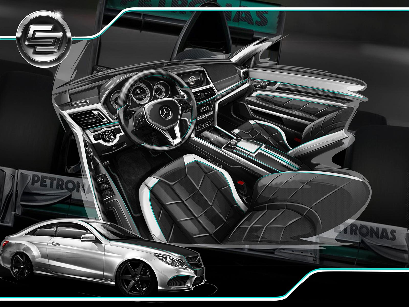 Nicht nur, dass der Besitzer dieses Mercedes E-Klasse Coupés der Baureihe W212 den 5,5-Liter-AMG-V8 aus dem E 63 AMG in den schicken Zweitürer verpflanzt hat. Auch der Innenraum des eleganten Coupés ist kaum noch wieder zu erkennen, individualisiert das Unternehmen Carlex Design es doch mit den Farben des Mercedes Werksteams und schuf so ein sensationelles Einzelstück.