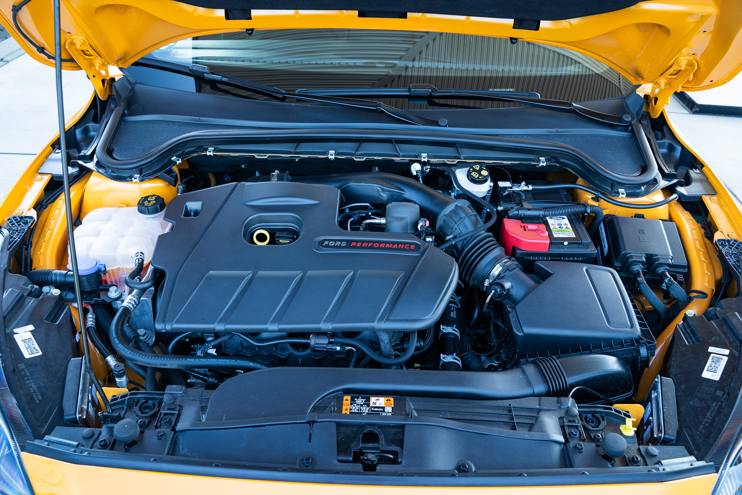 Weil der Turnier sowieso schon einmal ausscheidet und wir Sport treiben wollen: Benziner statt Diesel. Der Ölmotor mit 190 PS und 400 Nm ist zwar nett, aber ein wenig mehr Drehfreude sollte es schon sein: 2,3 Liter wuchten den Focus nicht nur zum derzeitigen Hubraumkönig seiner Klasse (der alte König Audi RS3 ist ja derzeit tot) sondern liefern auch 280 PS und 420 Newtonmeter.