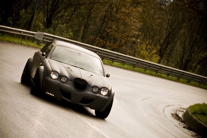 Auffallen um jeden Preis? Bitteschön. Mit dem Vintage GT des eher unbekannten, italienischen Tuner Panzani Design ist das kein Problem. Als Basis für den mehr als extrovertierten Auftritt dient ein 395 PS starker Jaguar S-Type R, dessen aufgeladener 4,2-Liter-V8 normalerweise für eine ansehnliche Sprintzeit von 5,6 Sekunden auf Tempo 100 und 250 km/h Topspeed gut war. Angesichts der verbauten 305er Gummis hinten und des wuchtigen Breitbau-Kits, das die Italiener ihrem Vintage GT angedeihen ließen, wird zumindest die Höchstgeschwindigkeit stark leiden. Da nützt es wenig, dass sowohl die Haube als auch die Heckklappe aus Carbon gefertigt sind. Obwohl das rein optisch natürlich mächtig was hermacht.