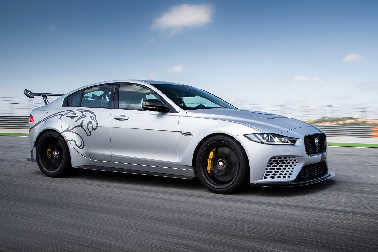 Die zur Wahl stehenden Außenfarben sind Valencia Orange, Velocity Blue, Corris Grey Satin und British Racing Green. Durch den optionalen Wegfall sämtlicher Schriftzüge wird das neue XE Topmodell endgültig zum Wolf im Schafspelz – Understatement in Reinkultur.