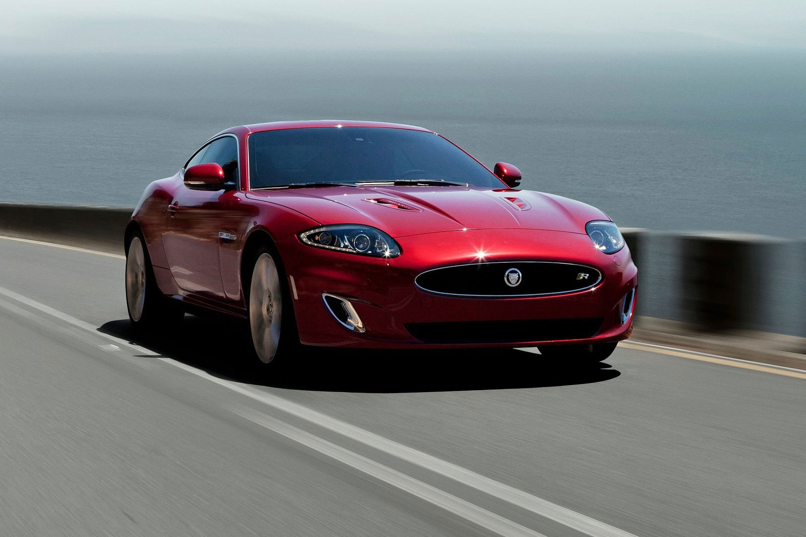 Letztere bekam neu gestaltete Frontscheinwerfer, LED-Einsätze mit Tagfahr- und Abblendlich sowie einen größeren Kühlergrill und eine modifizierte Frontschürze. Der Maschengrill des XK ist in Chrom gehalten, der des sportlicheren XKR dagegen in Mattschwarz. Diese, 510 PS starken Varianten (Coupé & Cabrio) mit dem Fünfliter-Kompressor-V8 unter der Haube geben sich überdies mit nun horizontal verlaufenden Luftaustrittsschlitzen in den vorderen Kotflügeln zu erkennen. Im Cockpit können für alle XK-Modelle nun die aus dem XKR-S bekannten Performance-Vordersitze geordert werden. Sie zeichnen sich durch integrierte Kopfstützen und eine optimierte Seitenführung aus. Die elektrische 16-Wege-Einstellung der Sitzflächen, Lendenwirbelstütze und Polsterelemente wird um eine Sitzheizung und Memory-Funktion ergänzt. Der Dachhimmel ist mit italienischem Leder (Jet Poltrona Frau) ausgeschlagen und optional ebenfalls für alle Versionen zu bestellen.