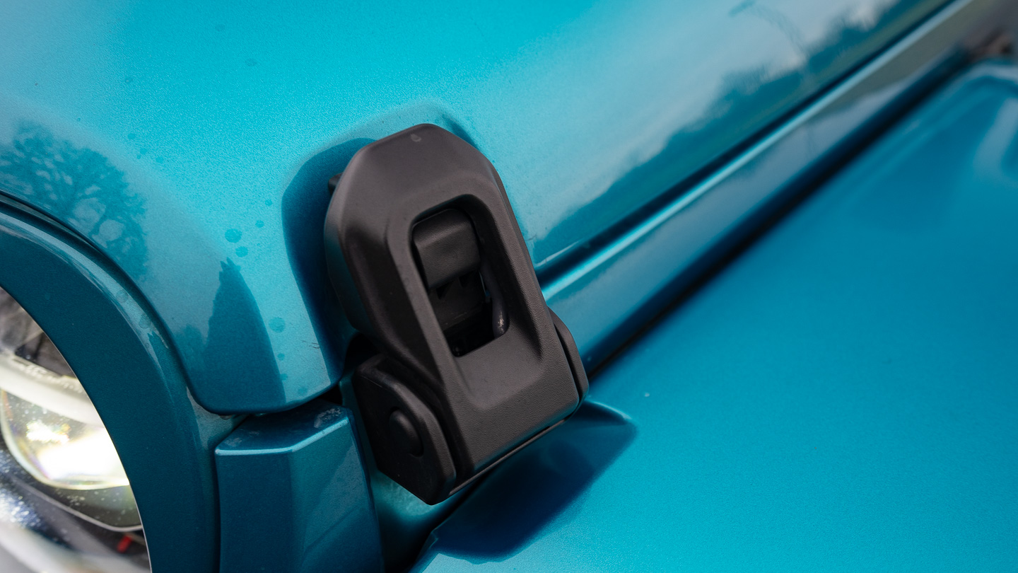 Denn man kann so ziemlich alles abbauen, was dran ist. Das komplette Dach, die Türen, ja sogar die Windschutzscheibe lässt sich nach vorn klappen. Dem Frischluftvergnügen steht dann nichts mehr im Weg. Auch hat man im freigelegten Zustand beste Übersicht über sämtliche Hindernisse im Gelände.